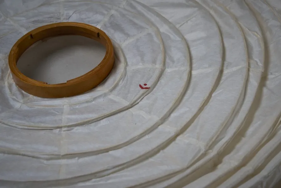 While the lampshade remains original, the frame of this Akari model “10DA” has recently been replaced. However, it is important to note that the frame is an authentic Akari frame, carefully selected to match the original design intent and specifications. This upgrade ensures the structural integrity and longevity of the lamp while respecting the historical significance of the piece.