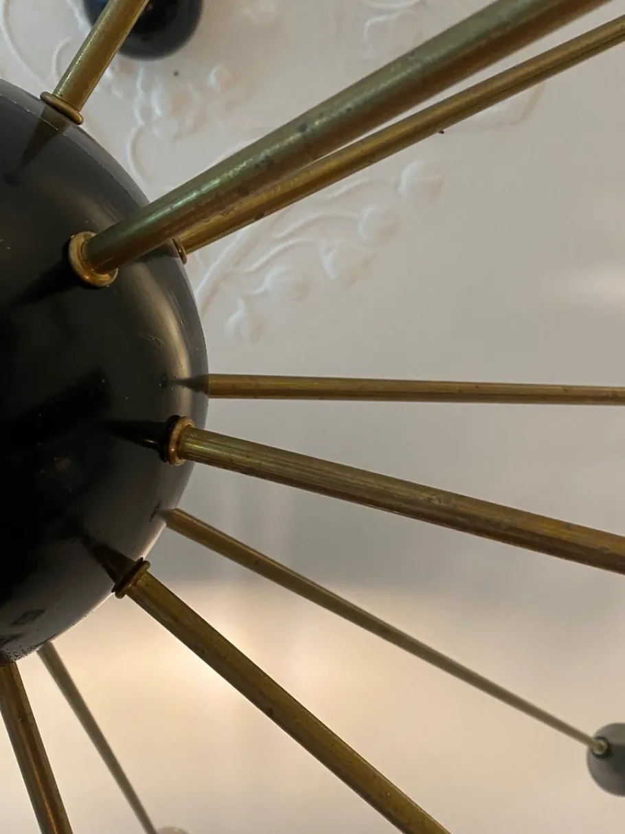 Very big Chandelier, brass, black lacquered metal, 20 bulbs