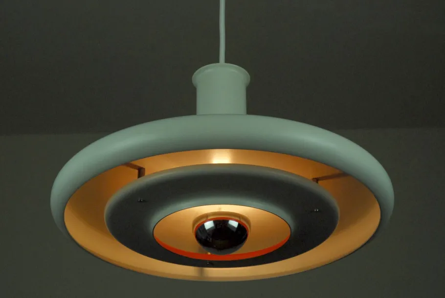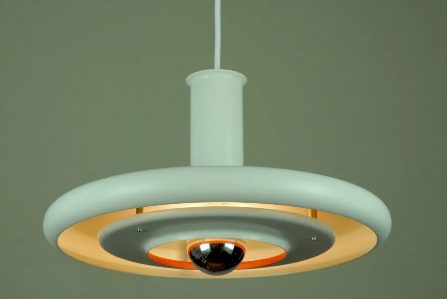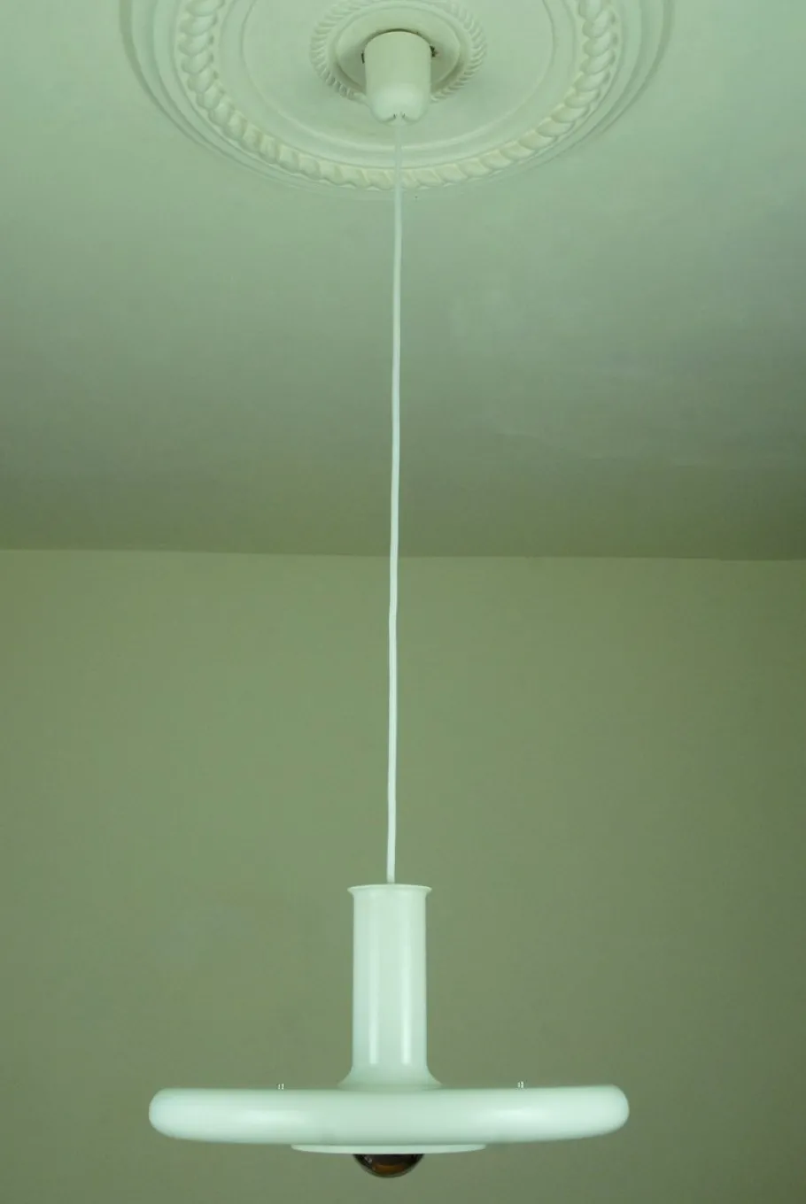 Material: Painted aluminium disc-style lampshade with a cylindrical top tube