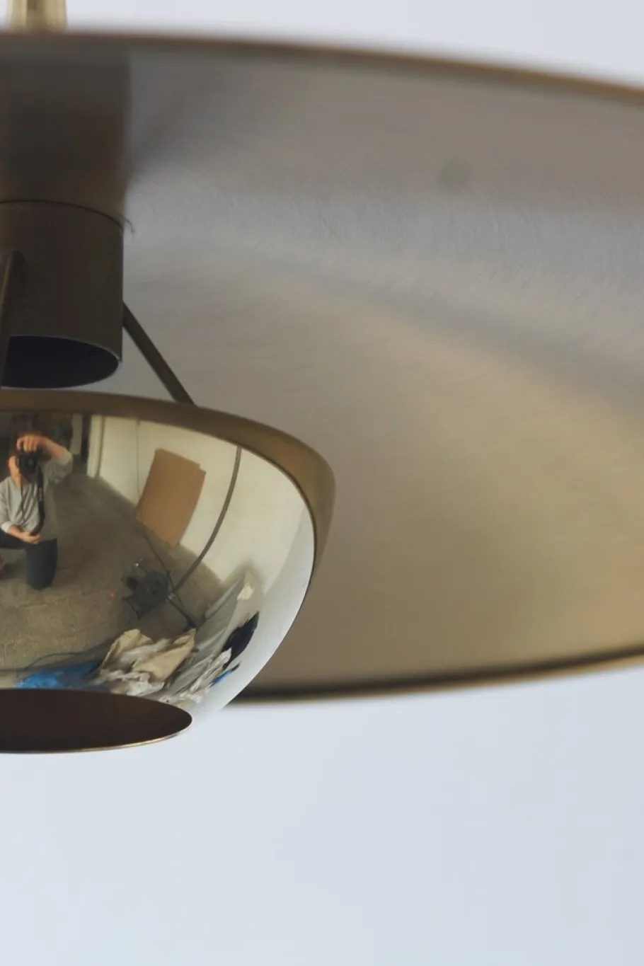 The lamp is made of solid brass, a material that not only ages beautifully but also reflects light in a soft, noble way.