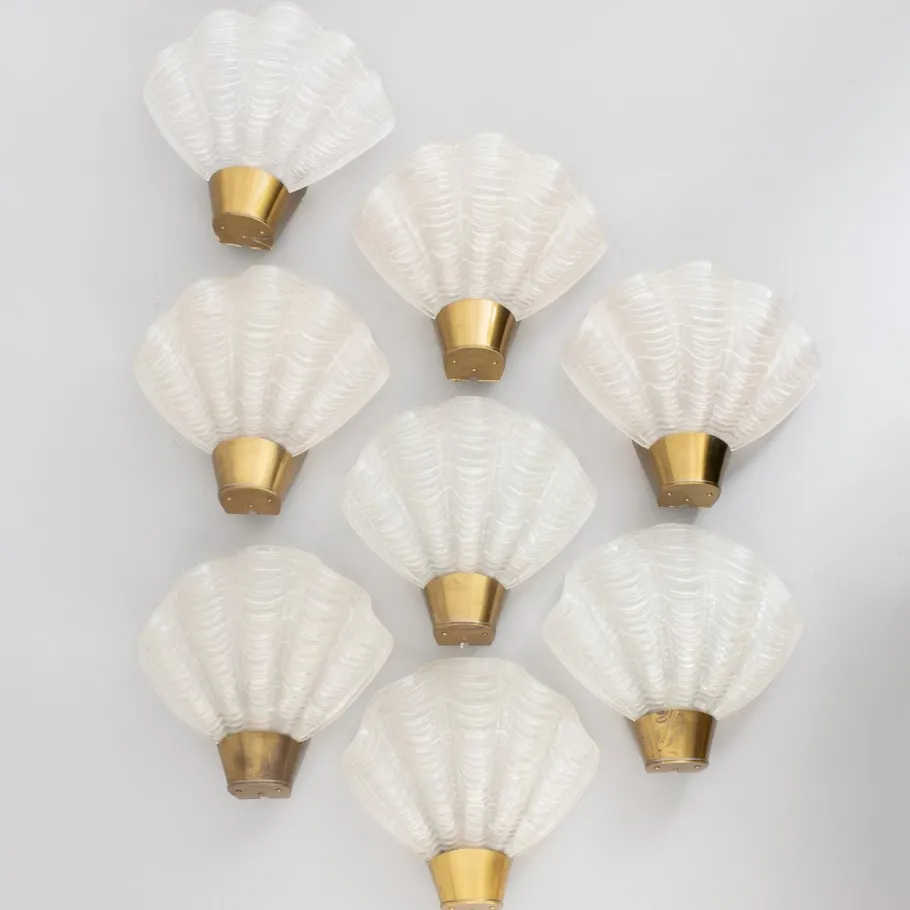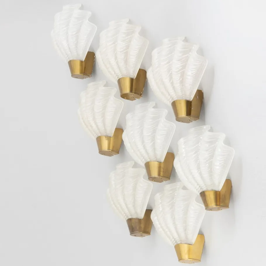 Swedish Modern lighting was directly influenced by ASEA, the historic company that had a decisive influence on how the Swedish electrotechnical industry has developed. Based on the classic pairing of brass and glass, these models have plenty to offer visually. These wall sconces are special for a couple of reasons besides the obvious visual uniqueness, starting with their material: acid treated glass. Essentially, acid-etching is a specialized glass fabrication process involving the application of hydrofluoric acid to annealed glass sheets or sections to give its surface a frosted look. The result is less opaque than milk glass, letting through more light. As these “coquille” or shell wall sconces show, enhancing glass with acid-etching is ideal to highlight the glass’s surface. The shell shape is further supported by the scalloped edge and lines throughout the shades that also creates an appealing effect when the lamps are switched on since the corrugated surface of the glass offers a pleasantly diffused light. The sconces are open on the sides and tops, therefore the provided light is functional as well. The bodies are mounted on brass bases that provide elegance and a beautiful contrast both in terms of colour and material. ASEA, the jewel of Swedish industry was broadly defined as “the generation and application of electric power”. The company manufactured such diverse items as steam turbines for power plants and high-speed electric locomotives for passenger railroads, and of course, these wall lamps. Adding illumination to a living space with this pair of beautiful wall lamps will not only improve the ambience, it will also bring a piece of design history to the space. Apart from the aesthetics, the quality of these lamps is also true to its Swedish heritage.