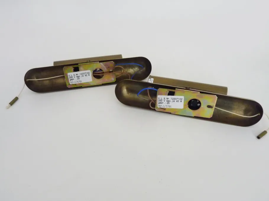 This pair of sconces was made in West Germany before the fall of the Berlin Wall.