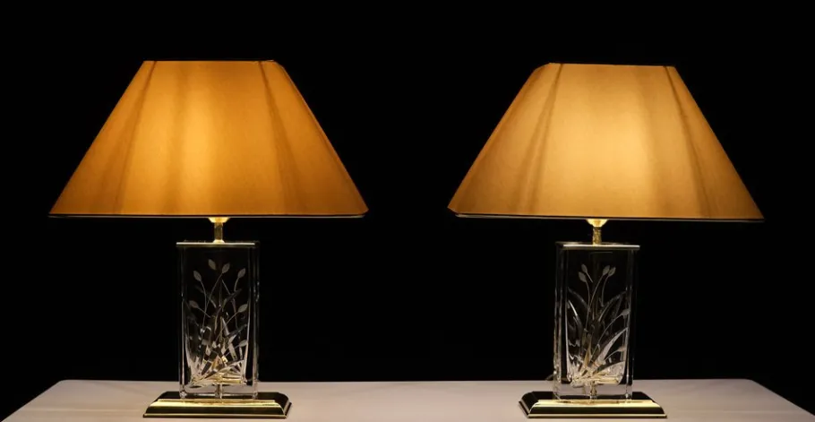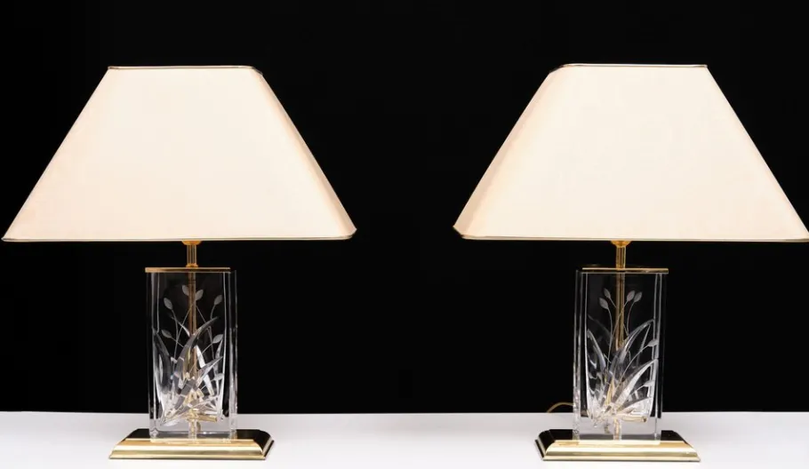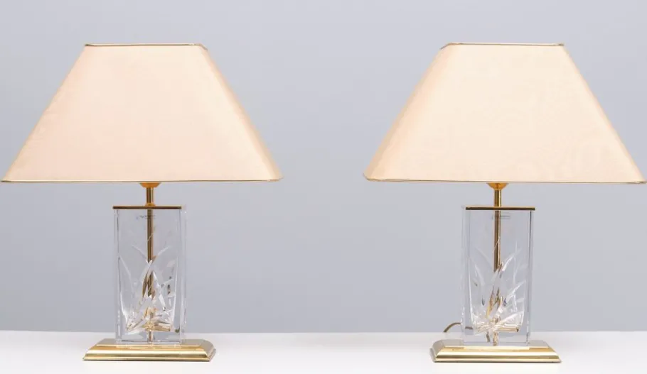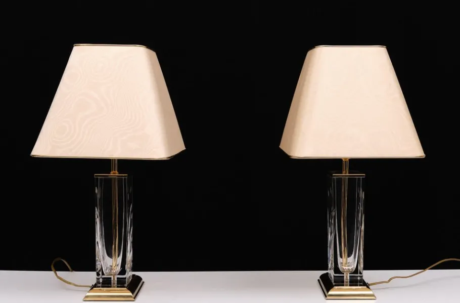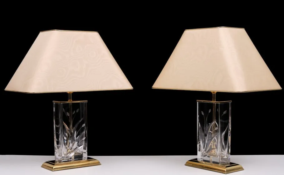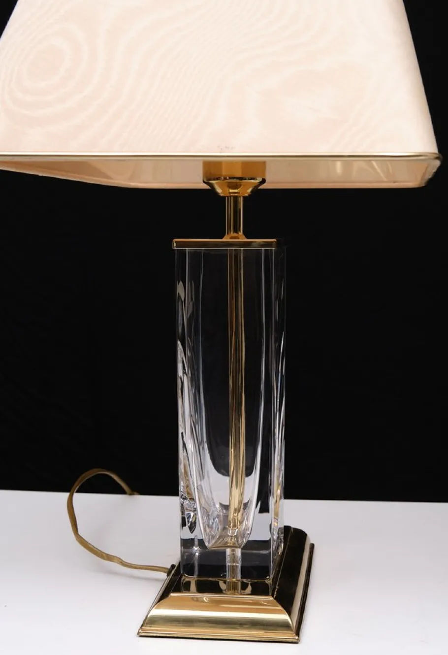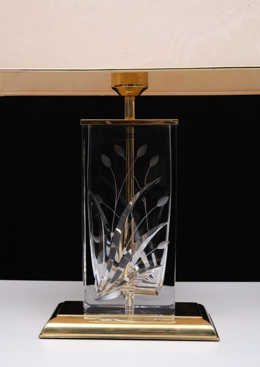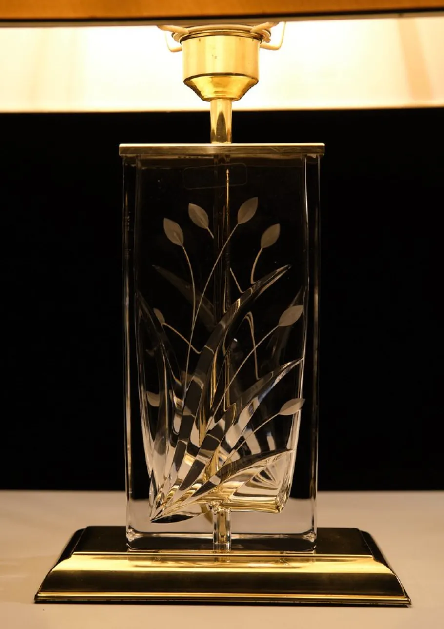 Cut Crystal Glass on a Brass base. Comes with the original shades .