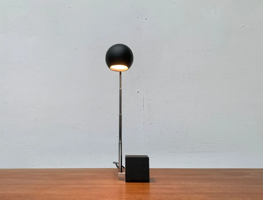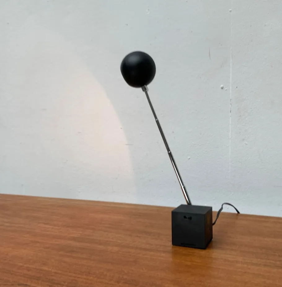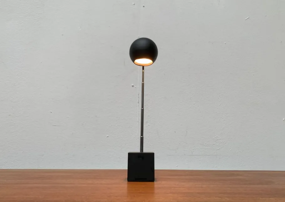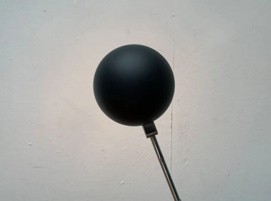 A functional design with a minimalist design language. The light head forms a ball, the foot a cube. The simple cube houses the transformer. The head and foot are connected to a telescopic arm. You can flexibly align your head and arm via different joints. The base plate is removable and is also used for wall mounting. The switch has two brightness levels.