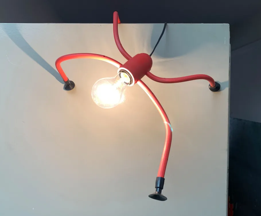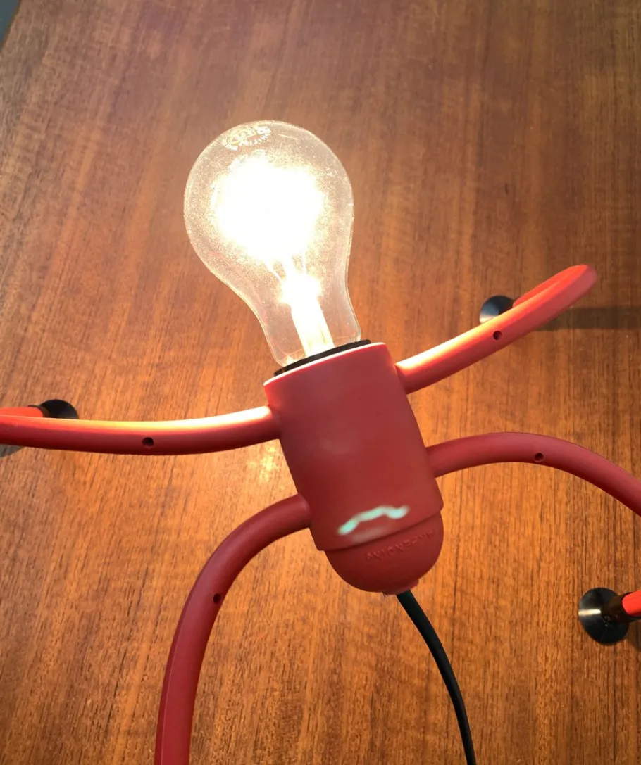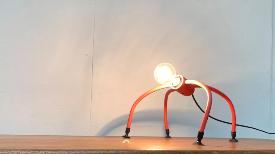 A playful and at the same time extremely functional design. As a so-called “Anywhere Light”, Eddy can be used almost anywhere due to its flexibility. The lamp consists of a flexible construction that is covered with a thermoplastic. Four arms or legs carry the central light acquisition. With suction cups, the lamp can be attached to the wall, floor or table. You can also bend the flexible extremities as hooks. With all the functionality, the personality of this little lamp is primarily in the foreground at the Eddy.