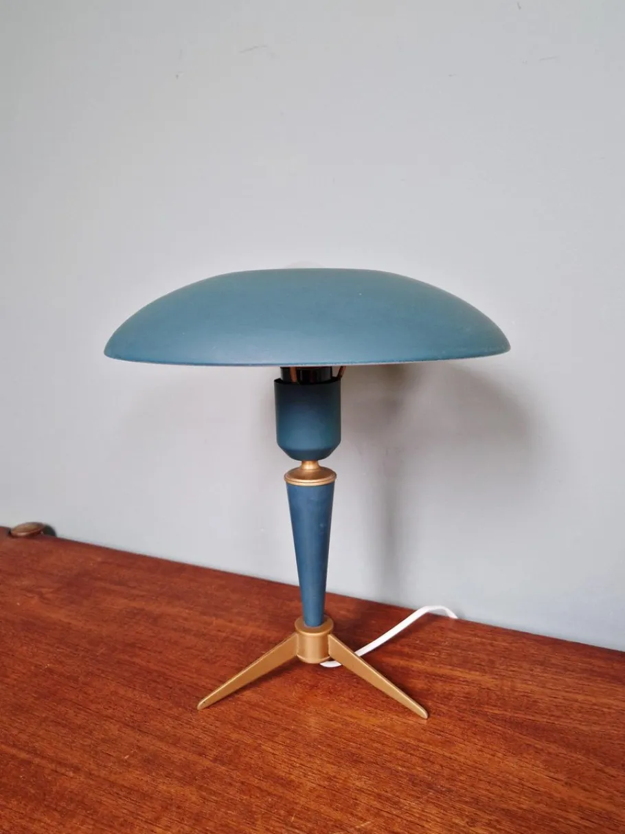 This blue-green lacquered aluminum lamp (in its original color) is an iconic piece of 20th-century design.