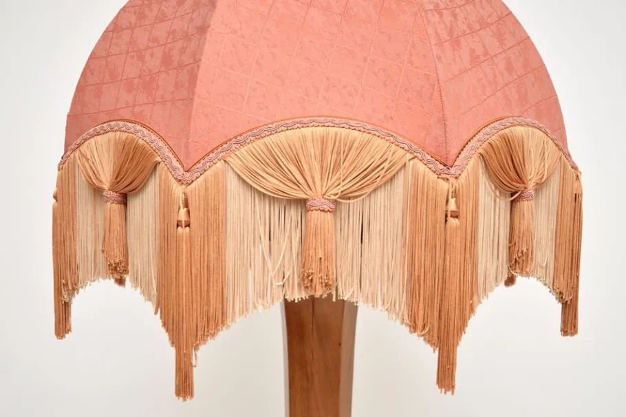 We have had this stripped and re-polished to a very high standard, it has been re-wired and is in good working order. We have paired it with an amazing vintage shade that compliments it very well. The condition of the lamp and shade are excellent throughout.