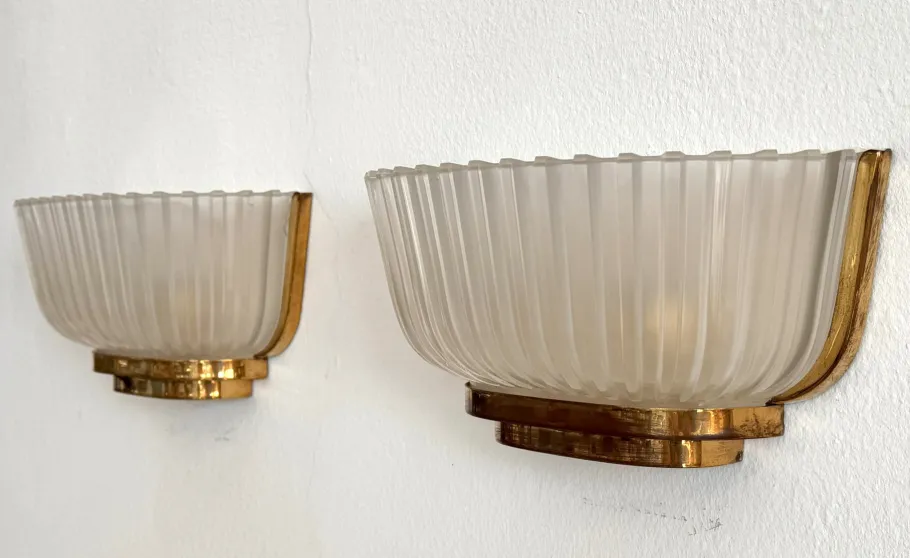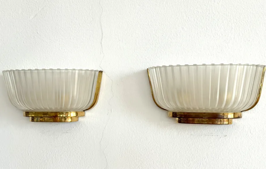 Beautiful, elegant pair of Art Deco sconces, manufactured by Archimede Seguso during the 1940s.