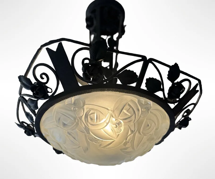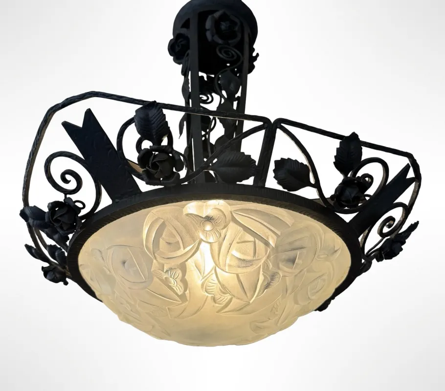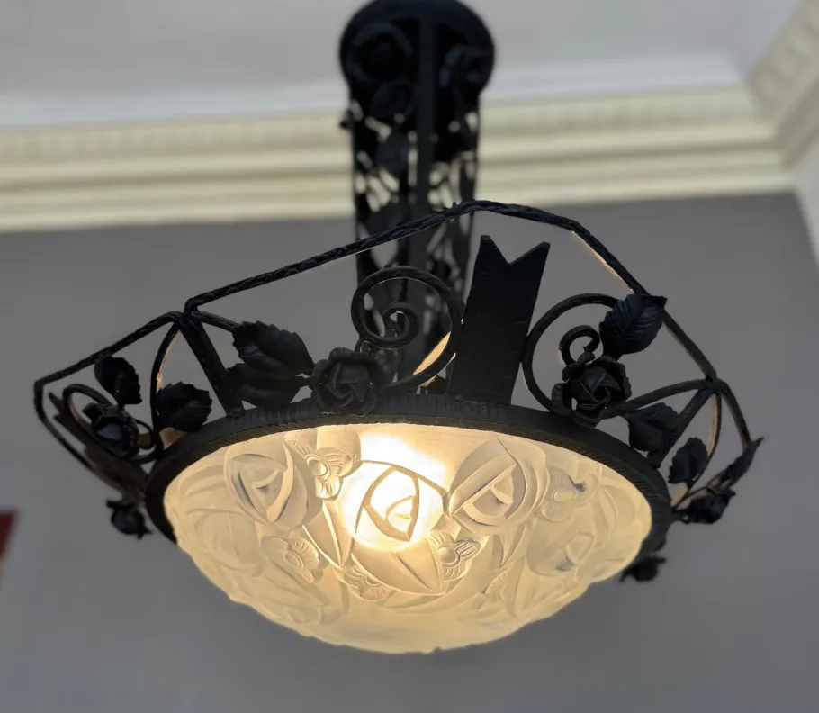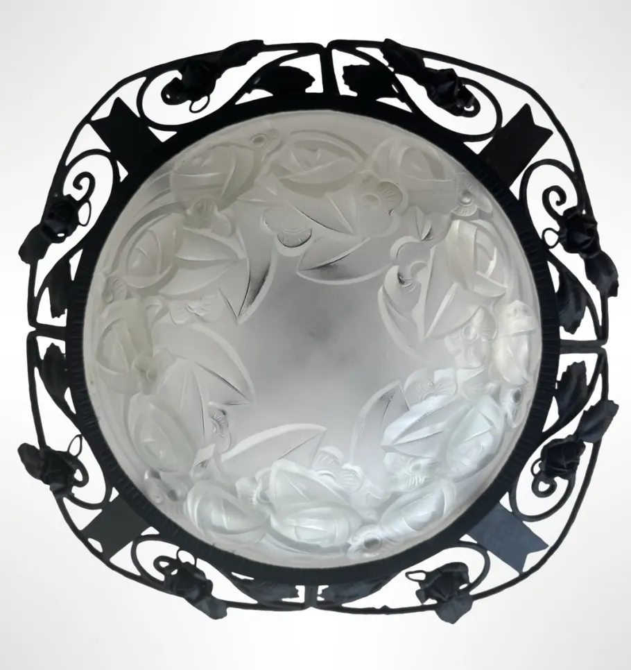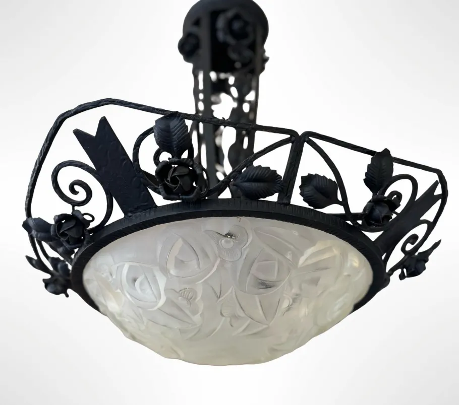 Black wrought iron frame (patina-paint) also featuring a rose decoration