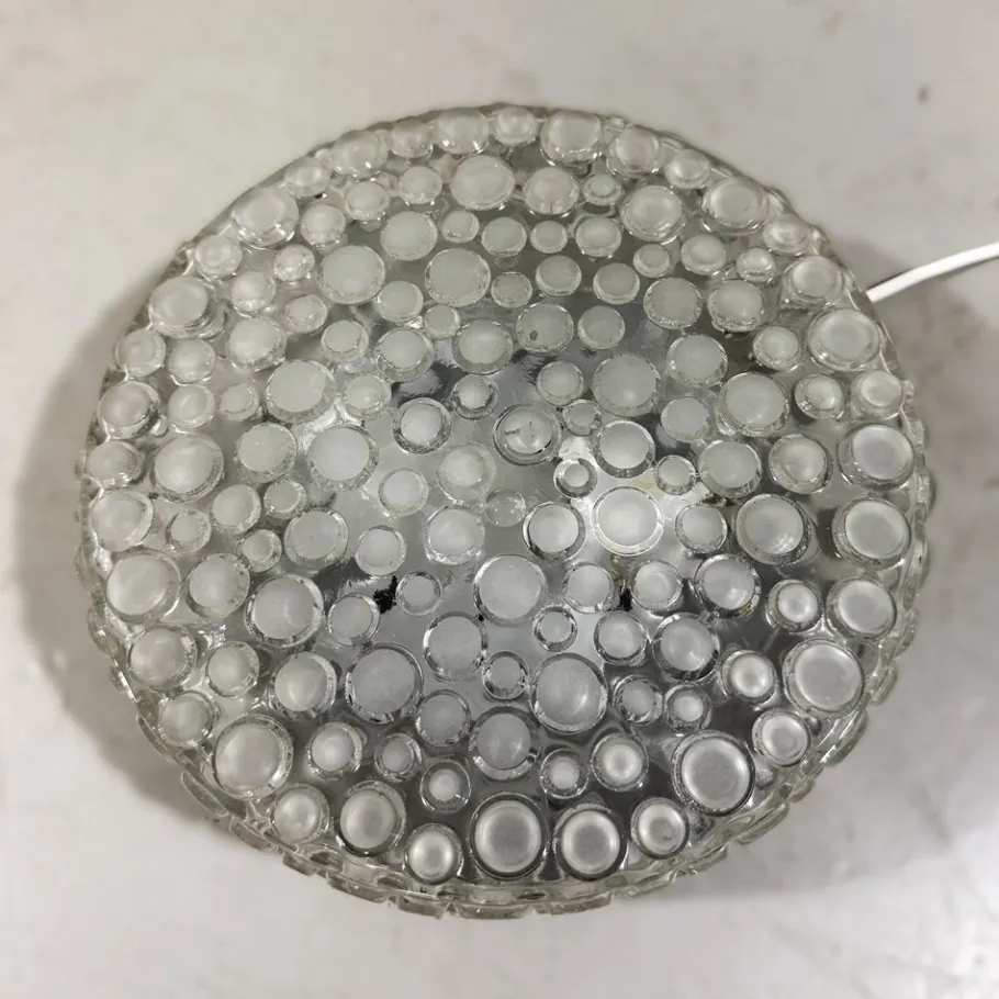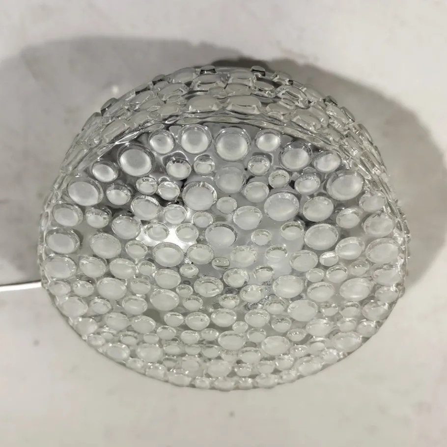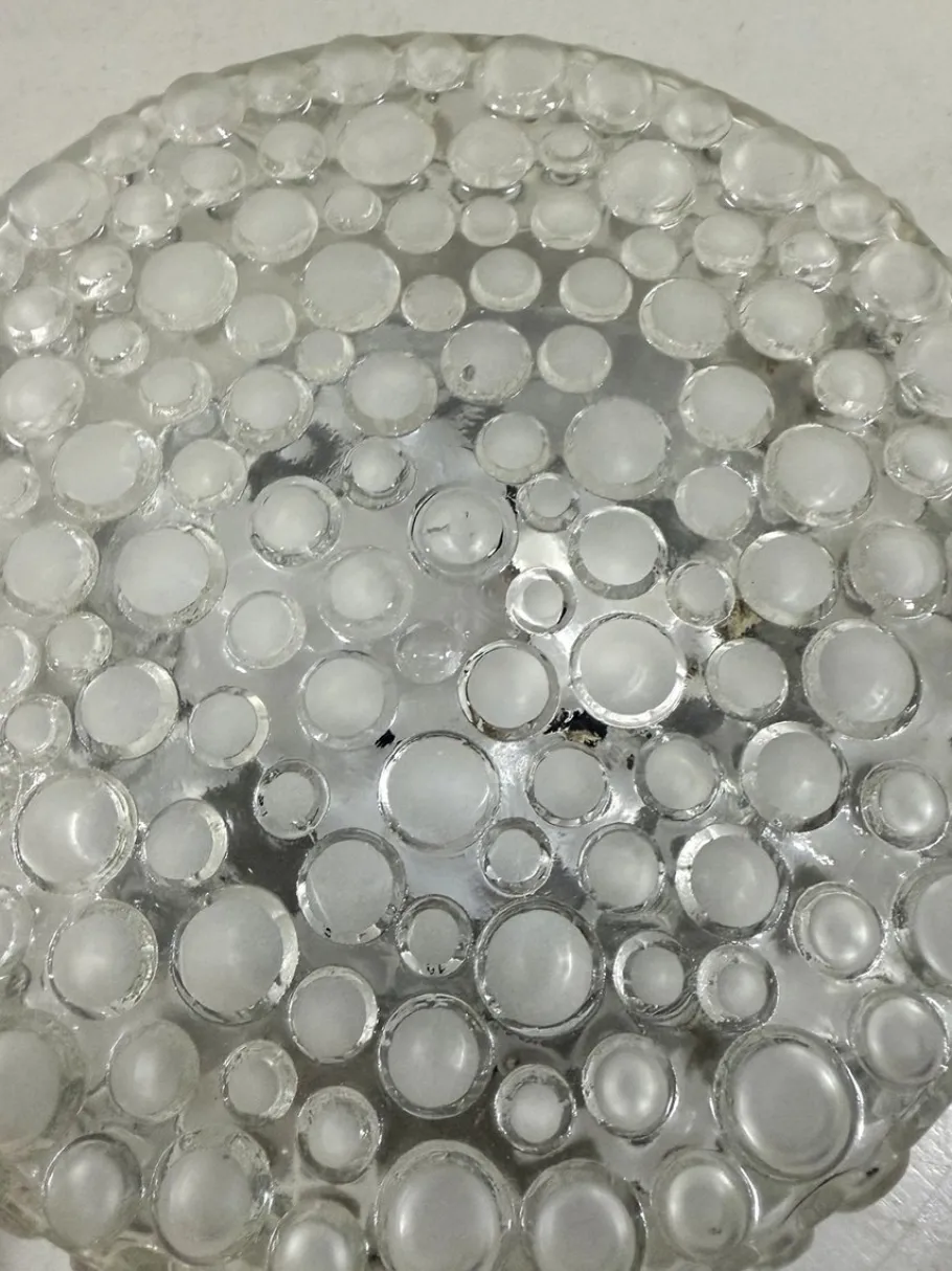 Thick clear glass with matted glass bubbles.