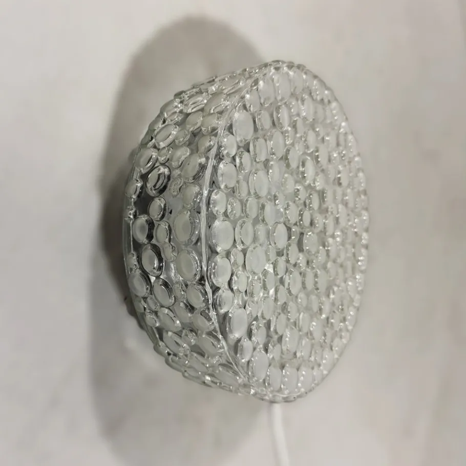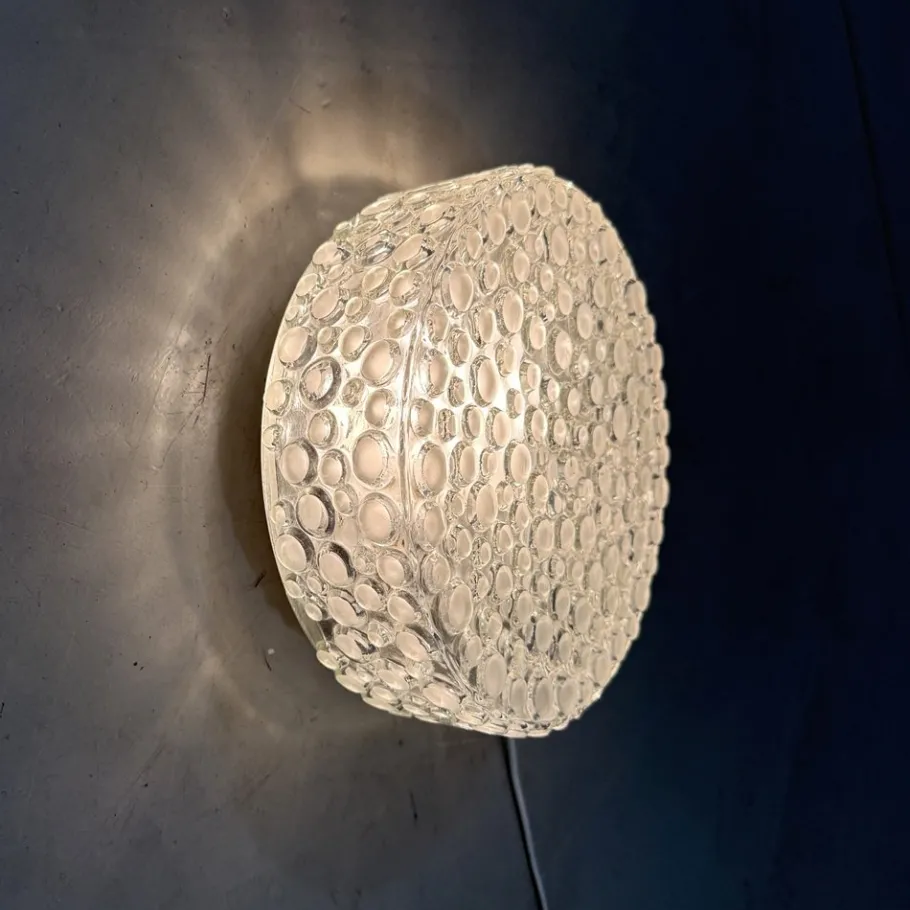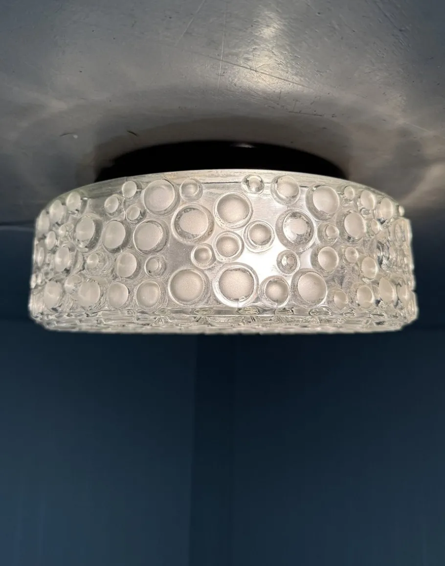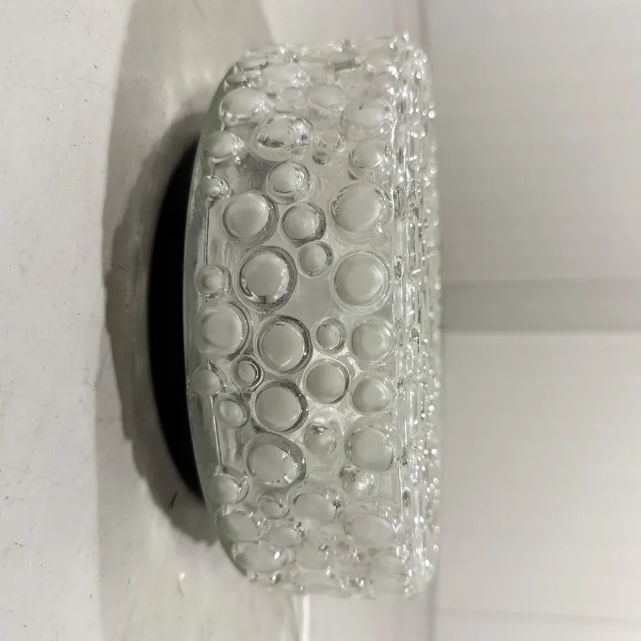 Thick clear glass with matted glass bubbles.