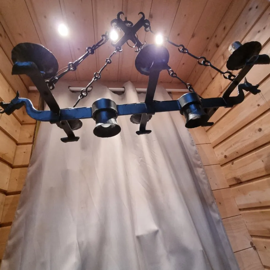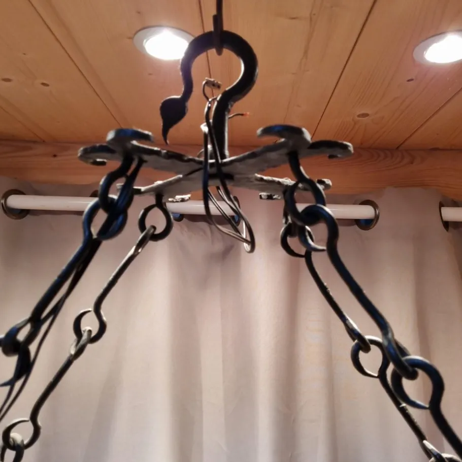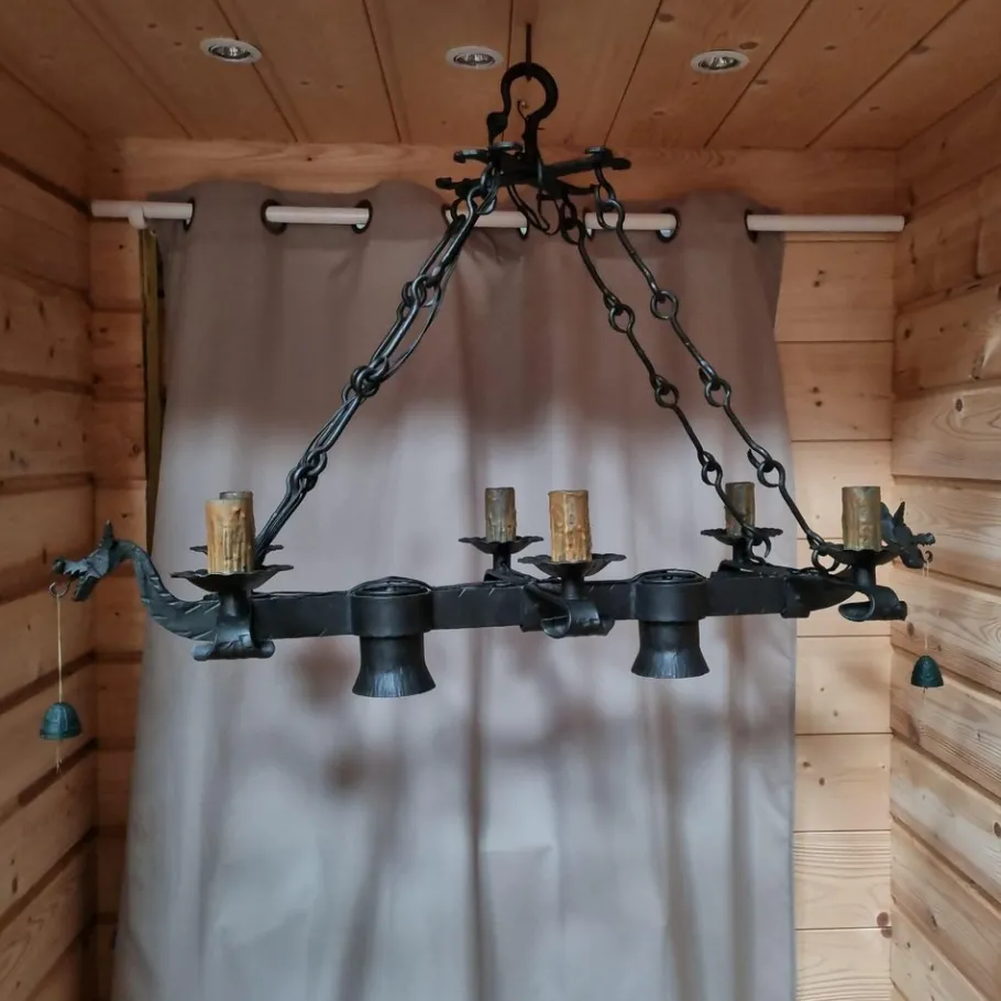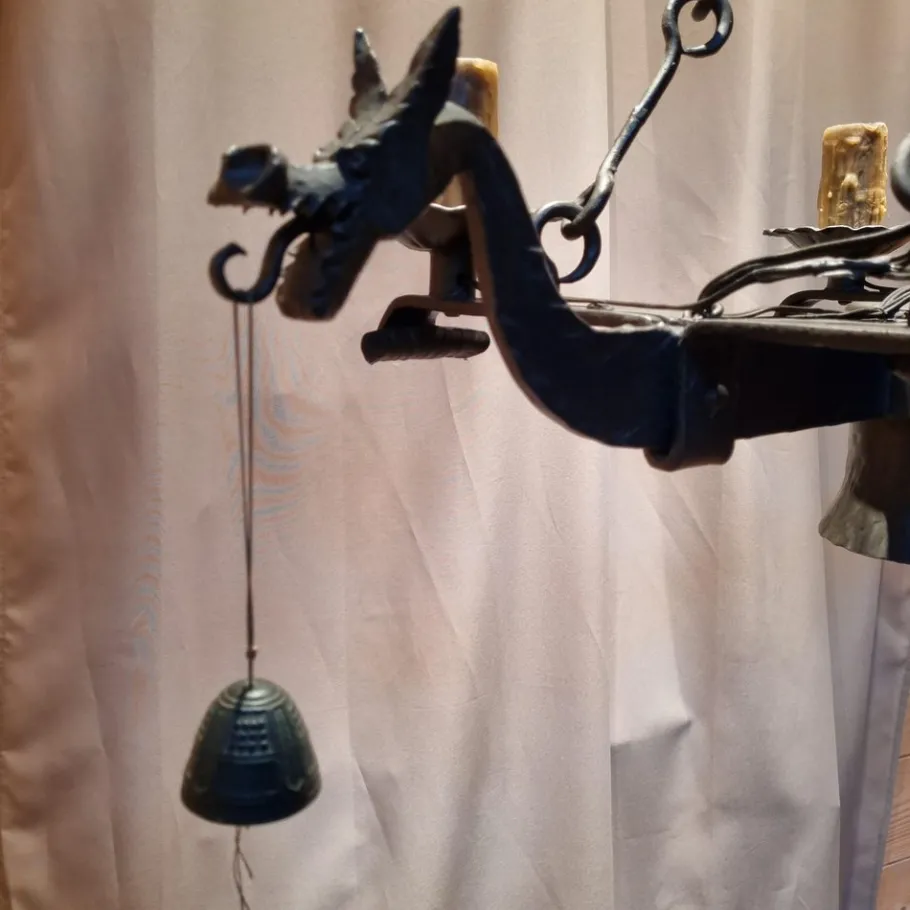 Maintains on the ceiling with the tail of the dragon also in wrought iron.