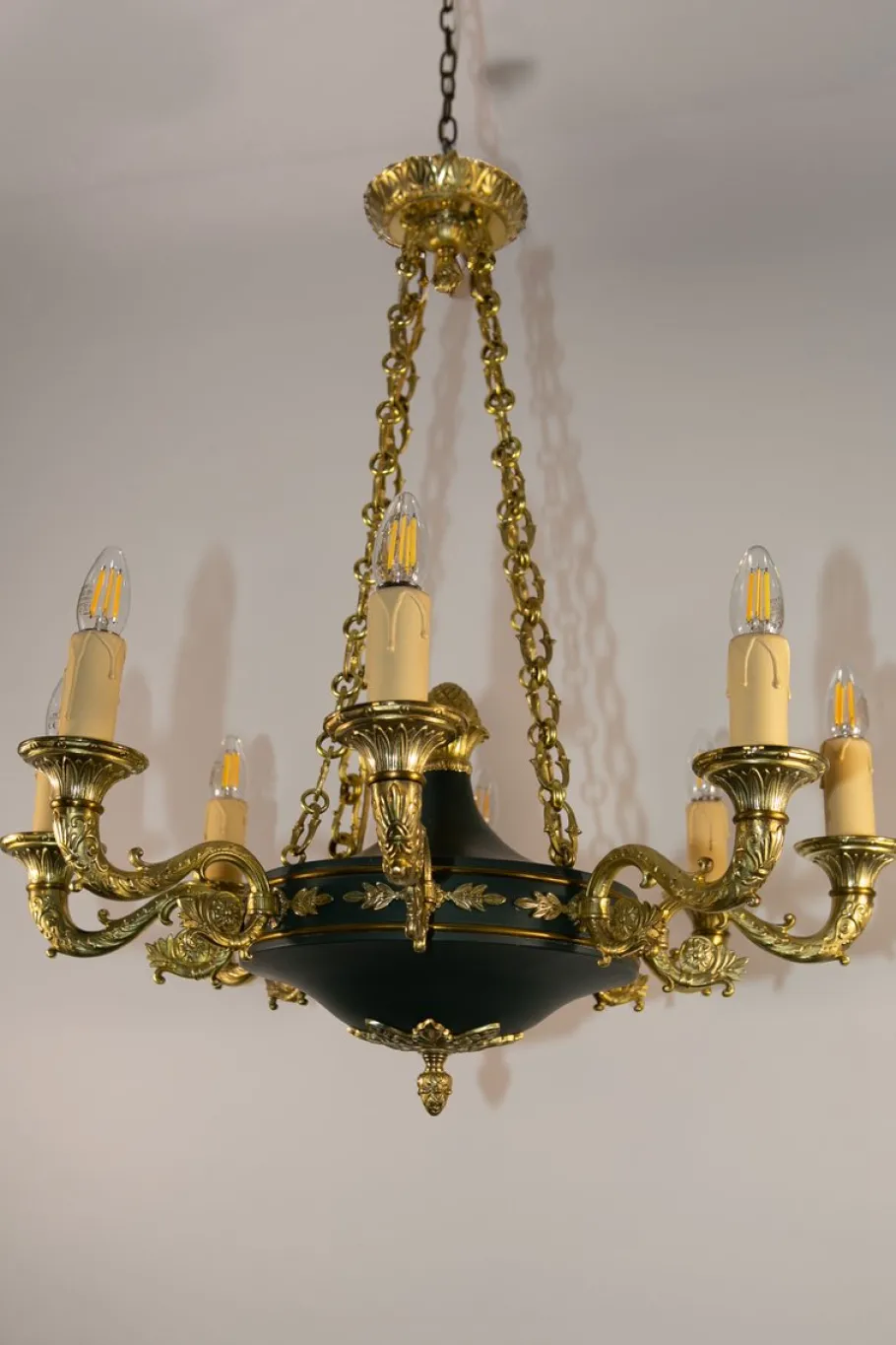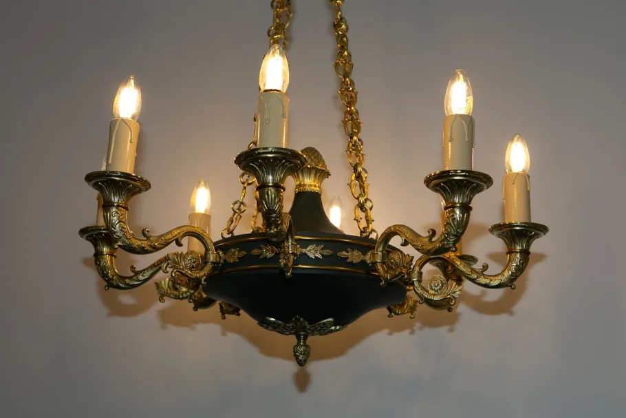 Eight focal points with original B22d sockets; You can easily get bulbs online.