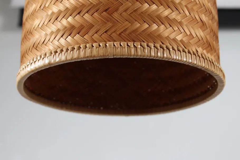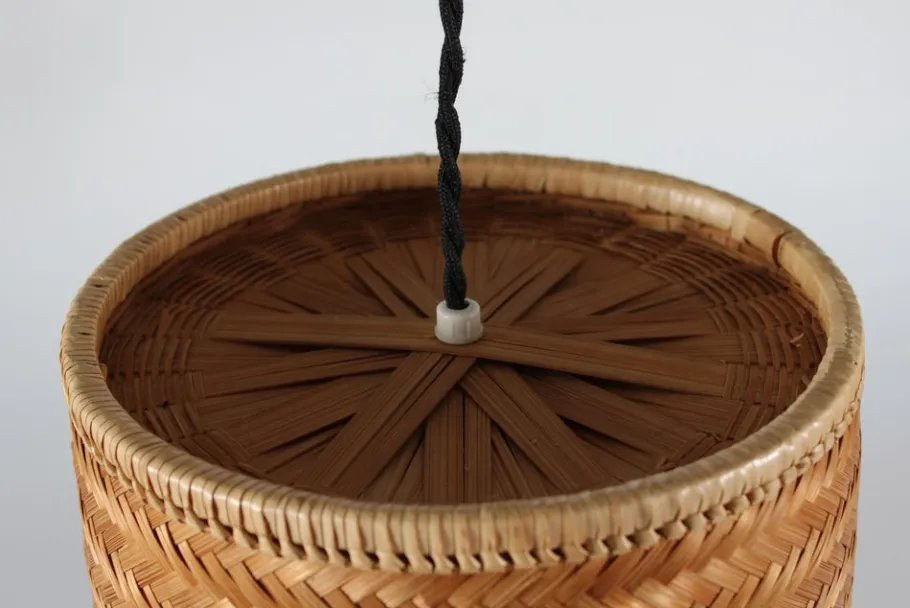 The lamp is fitted with a black fabric cord and by regulating the length of the cord the height of the shade is adjustable.