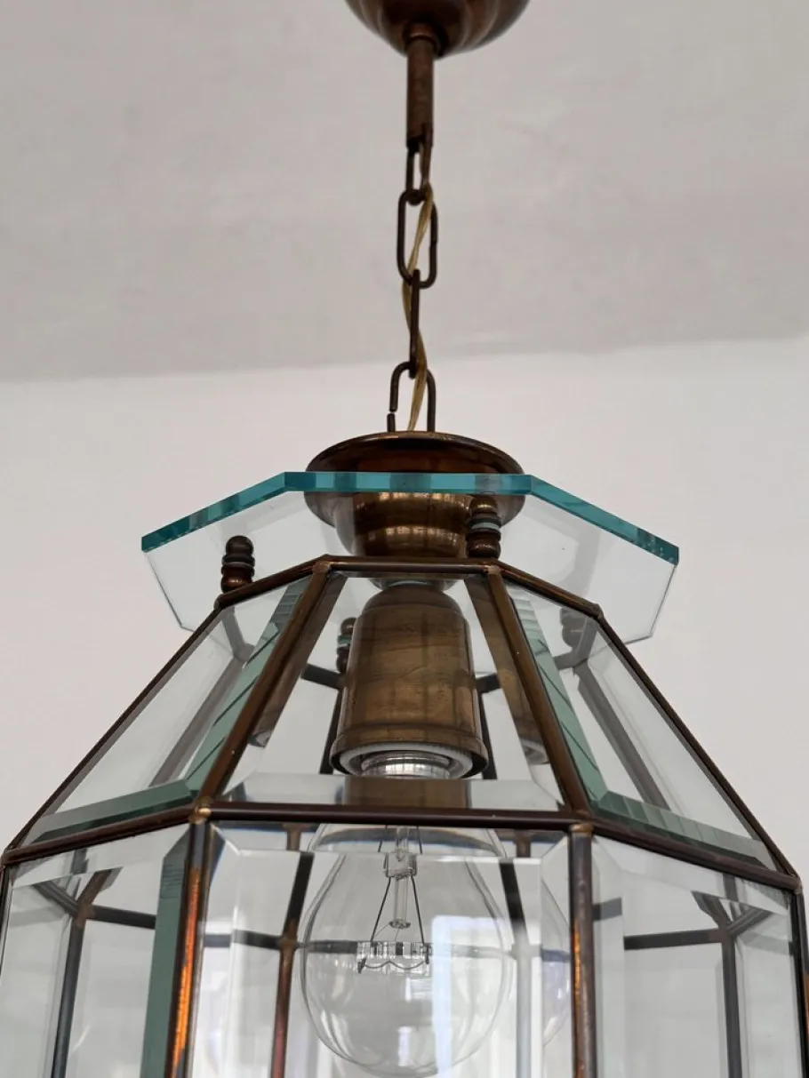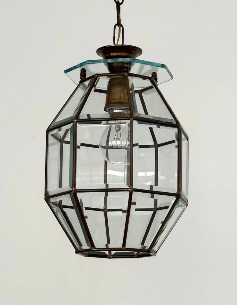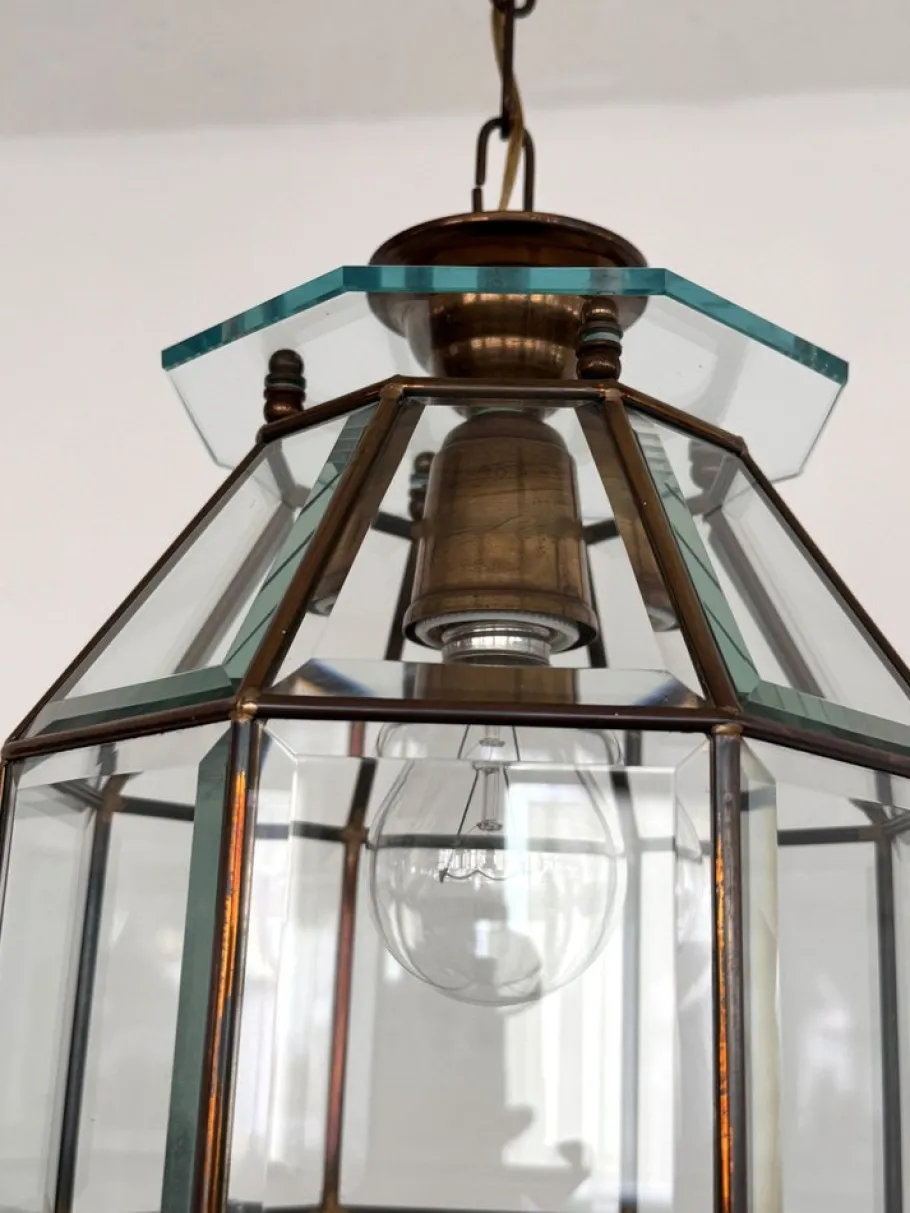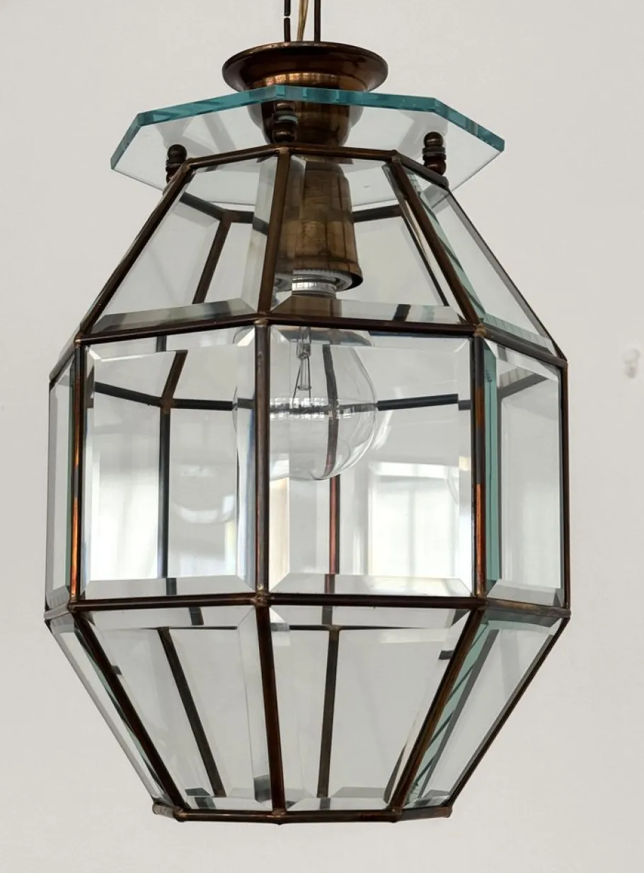 The crystal glass is very shiny and the brass has its original dark patina from the past years.