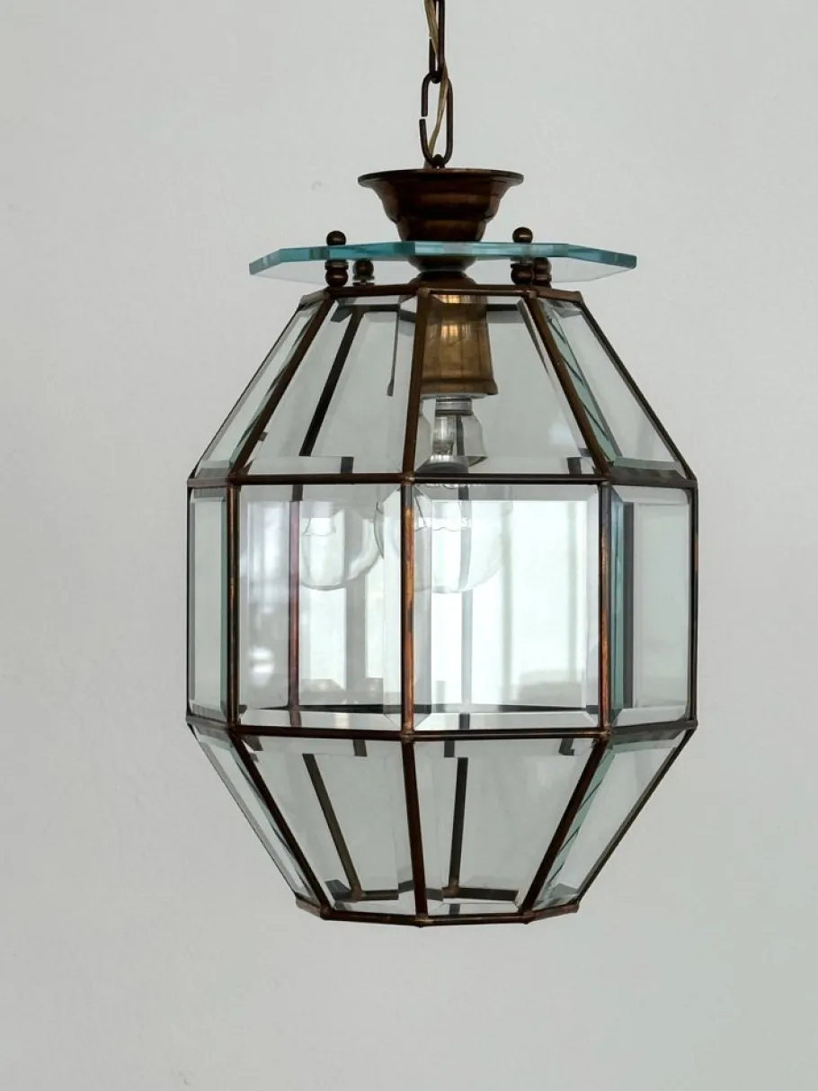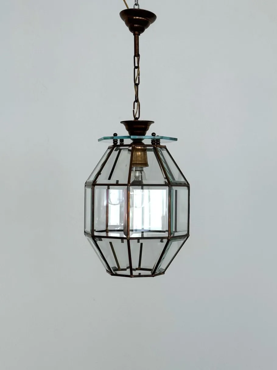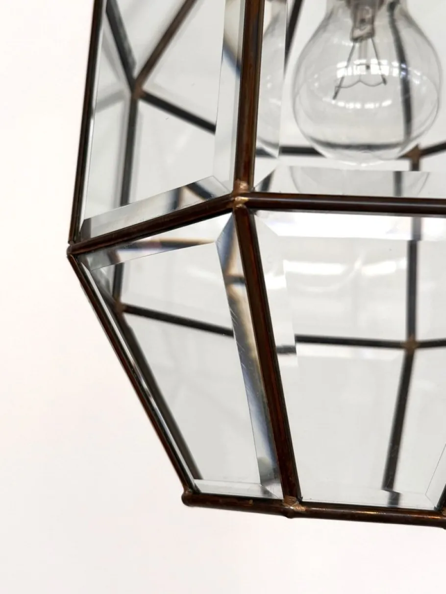 The crystal glass is very shiny and the brass has its original dark patina from the past years.