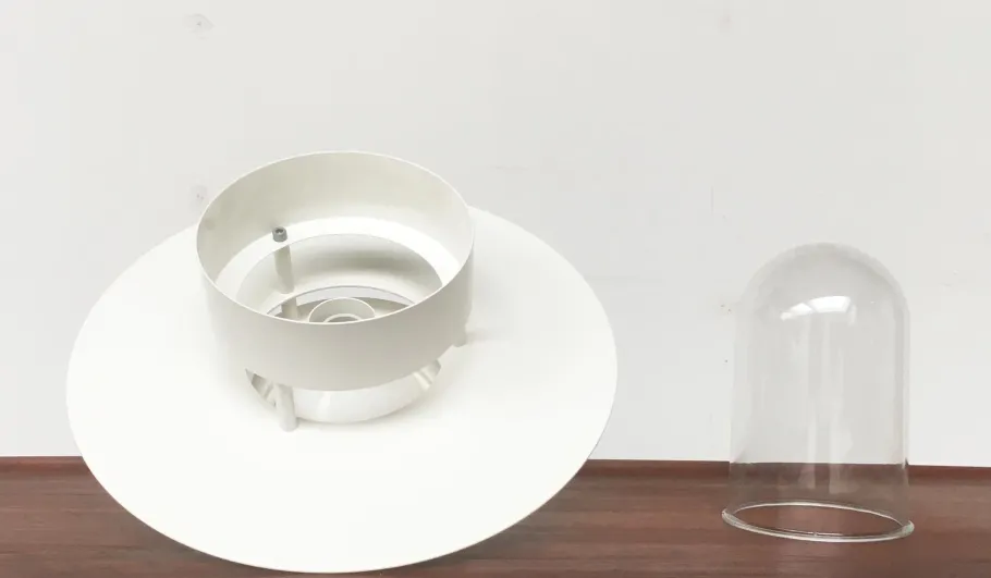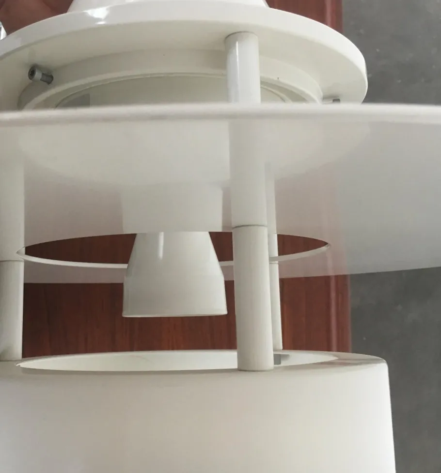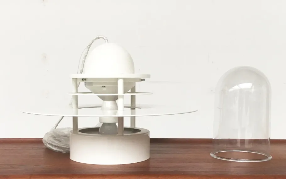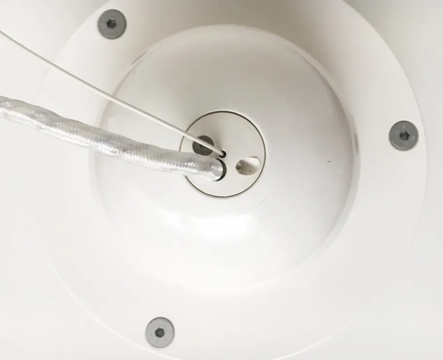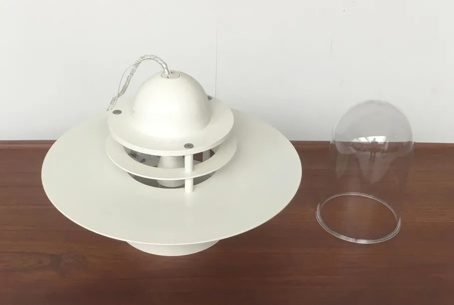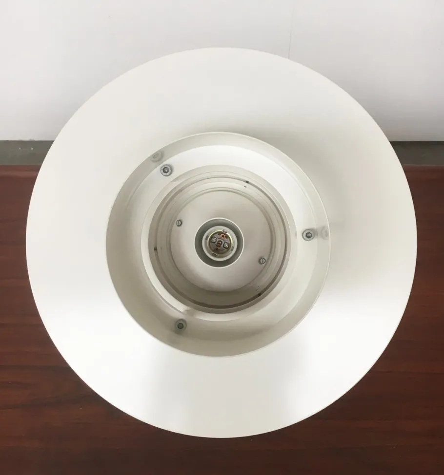 The body of the lamp shows the characteristic rings of the Albertslund series. The various rings not only look elegant, but are extremely functional. As reflectors to control the direction of light and as anti-glare rings to prevent glare from the bulb. The inside of the luminaire is protected by a hood made of acrylic glass and appropriate seals IP20. The luminaire is in mint condition. The cable is very long.