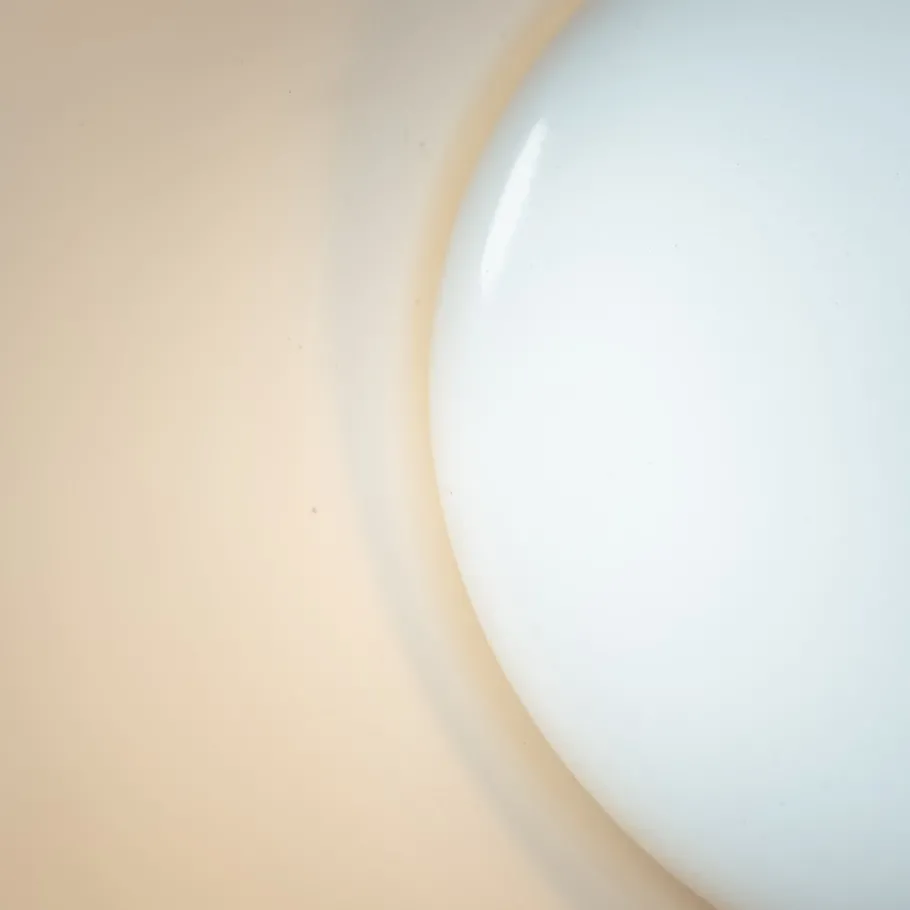 The base is made of enameled metal with three E27 sockets inside. On top is a big white acrylic shade. All parts are original, and the lamp is in perfect condition.