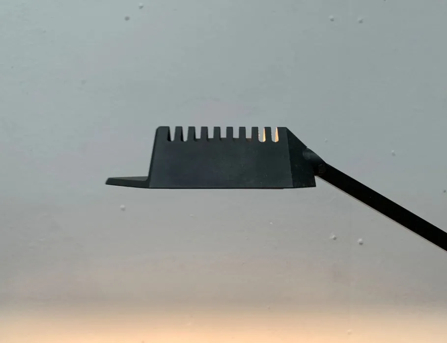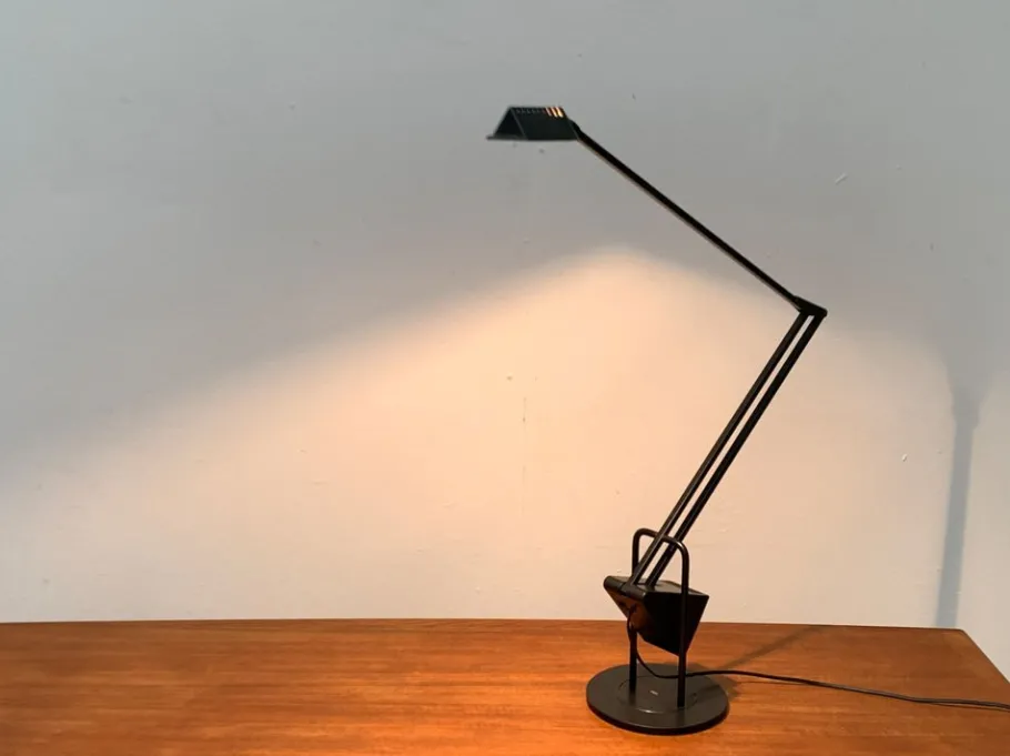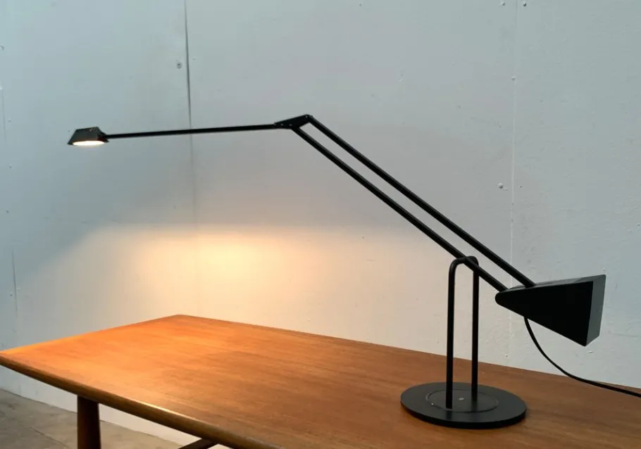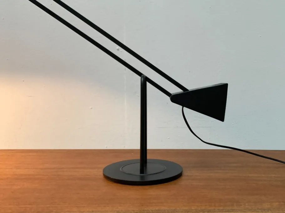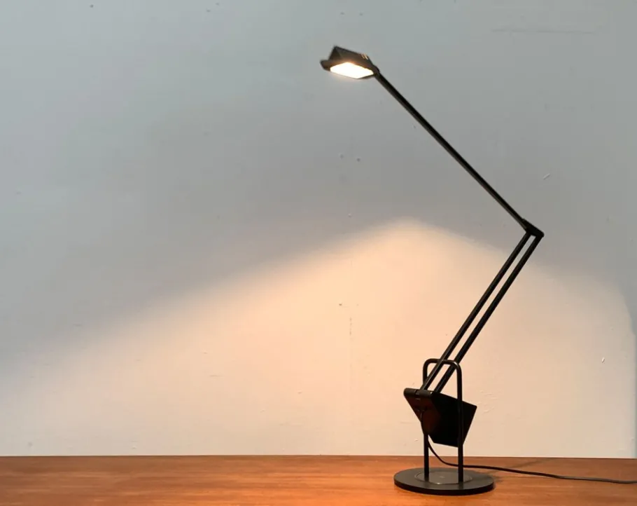 The complex design of the flamingo with connected joints and the large counterweight enables very special flexibility. It is perfectly balanced and allows countless positions. The range and general appearance of the lamp can be changed in no time. A turntable is integrated in the table foot so that the lamp can rotate.