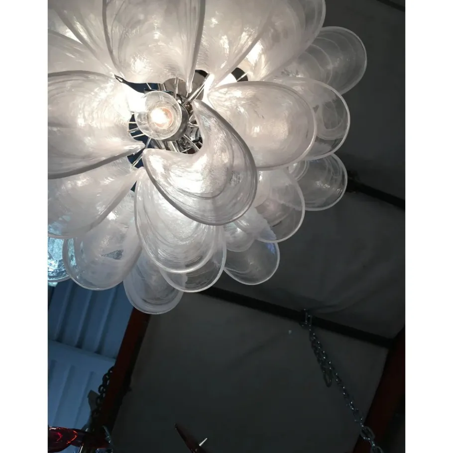 Metal frame in kromo and all Alabaster glass , italian Murano glass made in Venice Italy