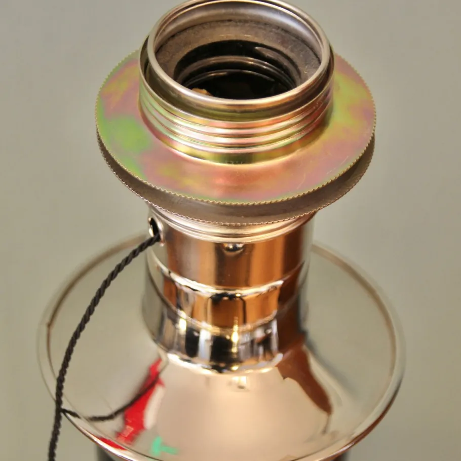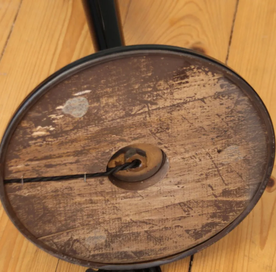 | Restoration and Damage Details | Light wear consistent with age and use, Rewired and/or new electrical components, Small notch on lower metal plate |