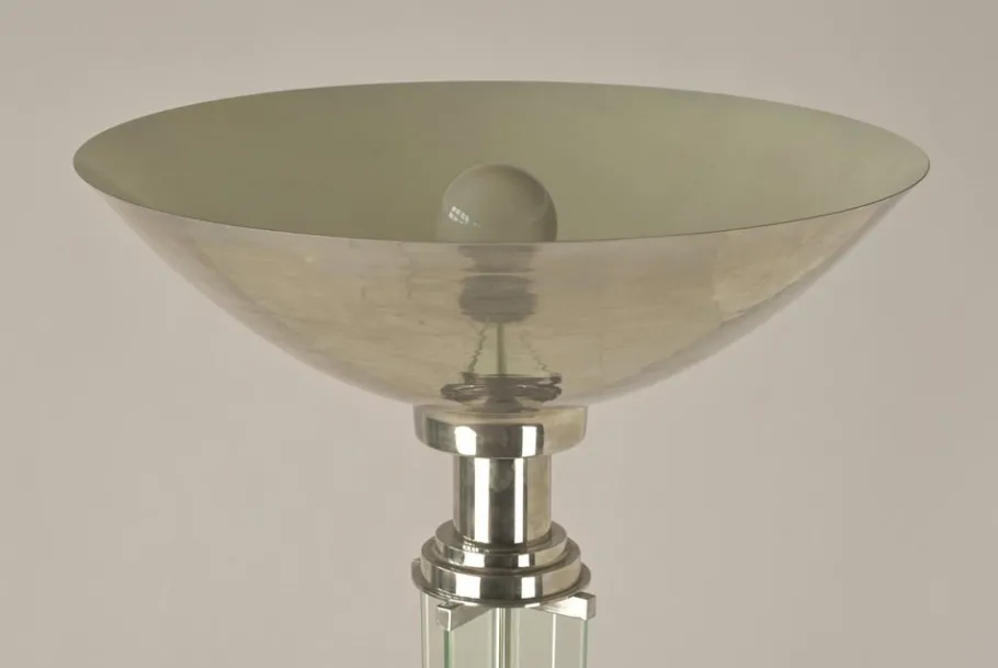 Fine materials and good workmanship can be found in the decorative ART DECO floor lamp from France. Apparently manufactured in a small series, not many of these lights have survived the last 70 years. In the living room or entrance hall, the luminaire always sets a high-quality (light) accent. with the included cord dimmer, different moods can be easily created and the dimmer can also be used with dimmable LED lamps.