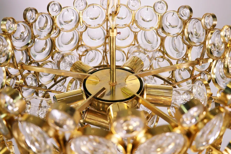 Condition: very good vintage condition. Chandelier is complete, the crystals without chips or cracks and in working condition.