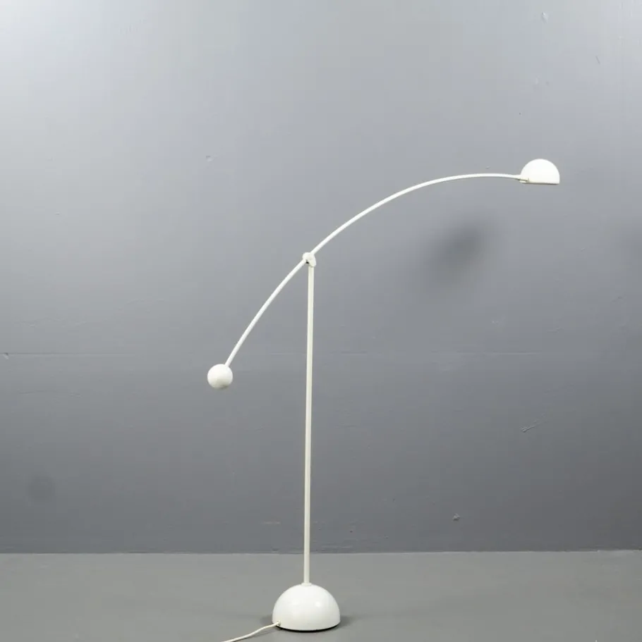 This Floor light not only brightens up the room, it shows 80s design at its best. The white metal wire arms is adjustable, the lamp is halogen.