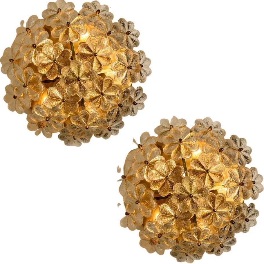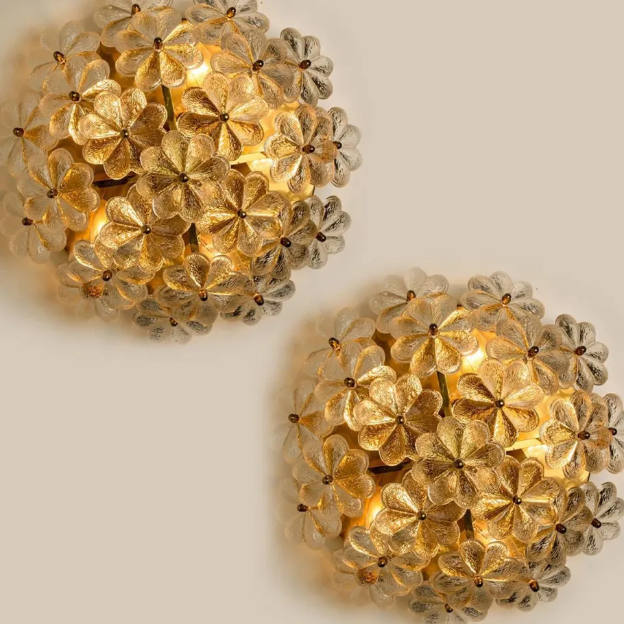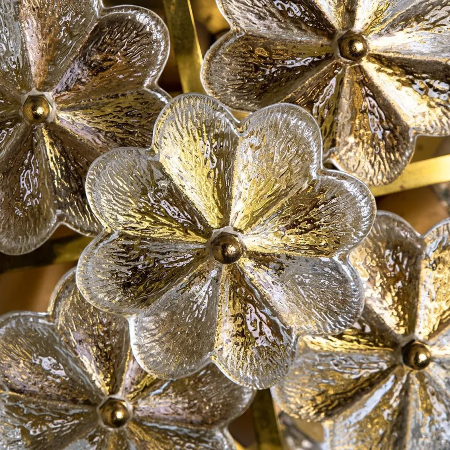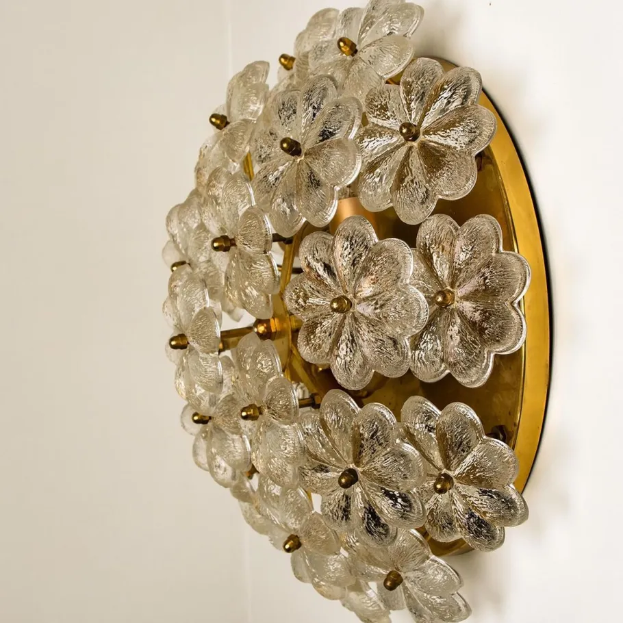 Cleaned and well-wired, in full working order and ready to use. The brass frame is in very good condition. The 24 crystal flowers, all original and in excellent condition, screw securely to the frame.