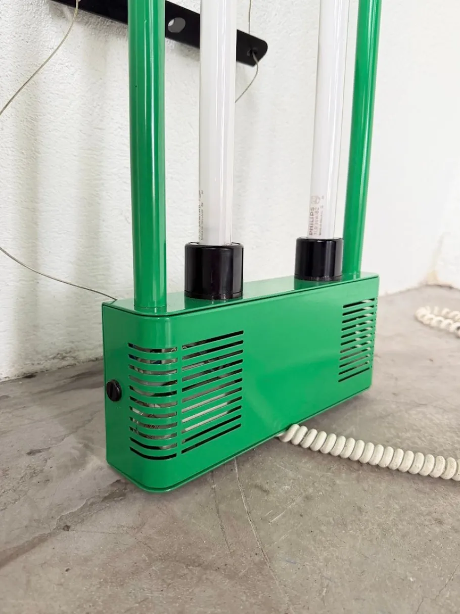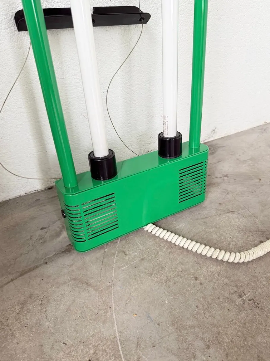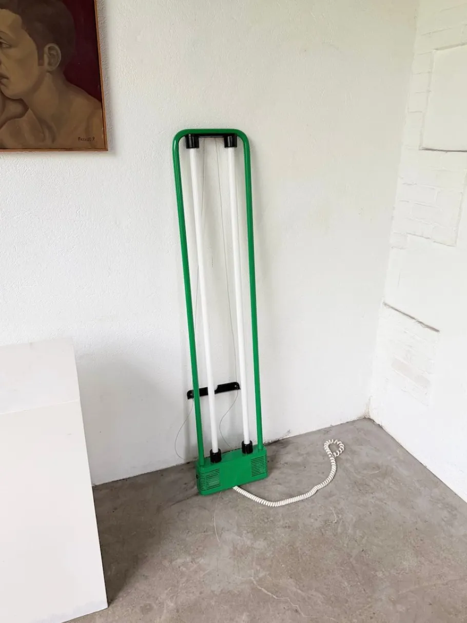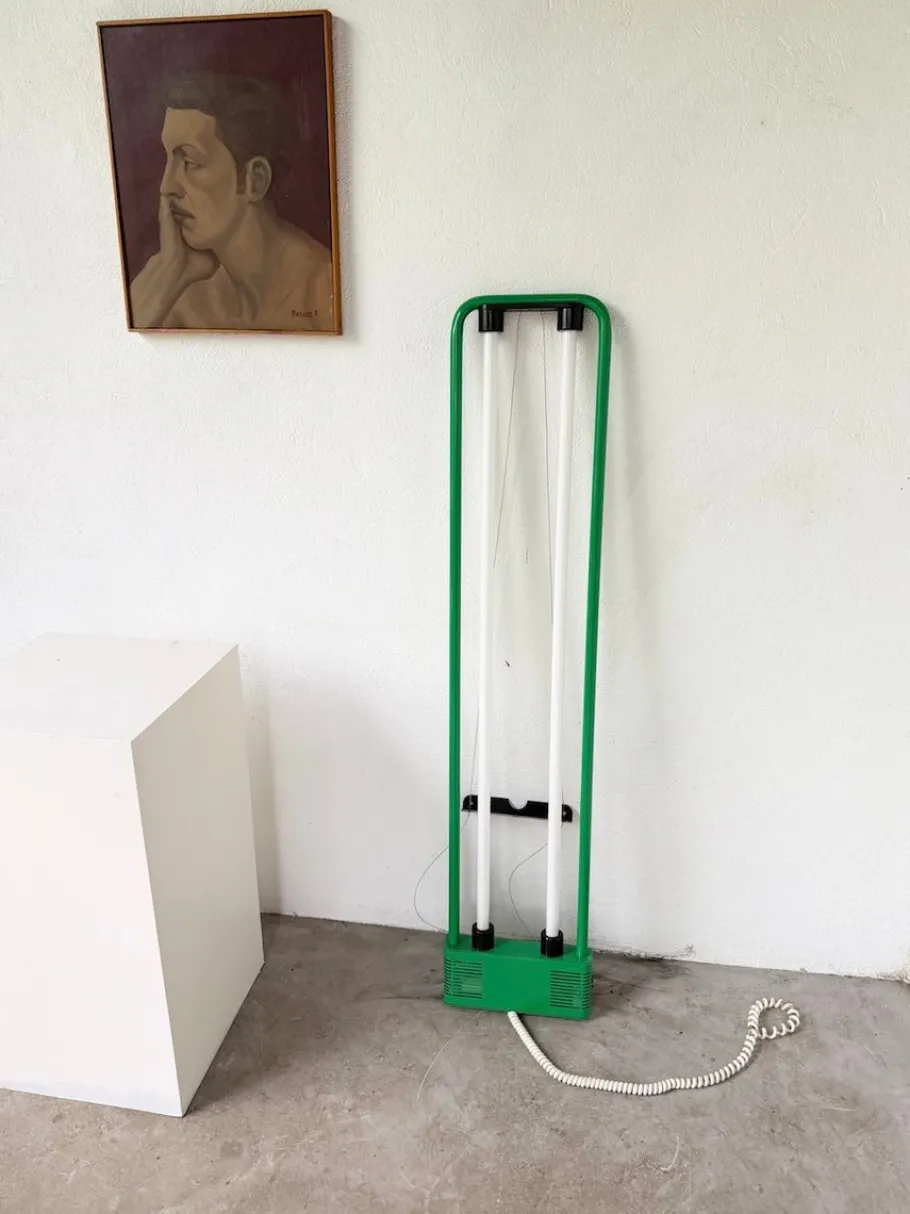 Green lacquered tubular, we love the clean and quite pop design of the whole thing.