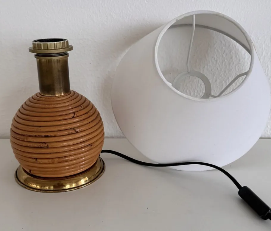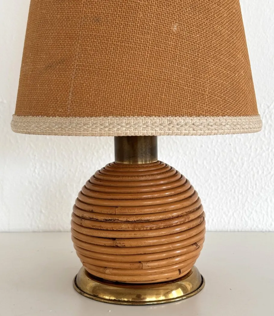 Very nice organic table lamp made of rattan – bamboo with brass details, Boho style, by Vivai del Sud.