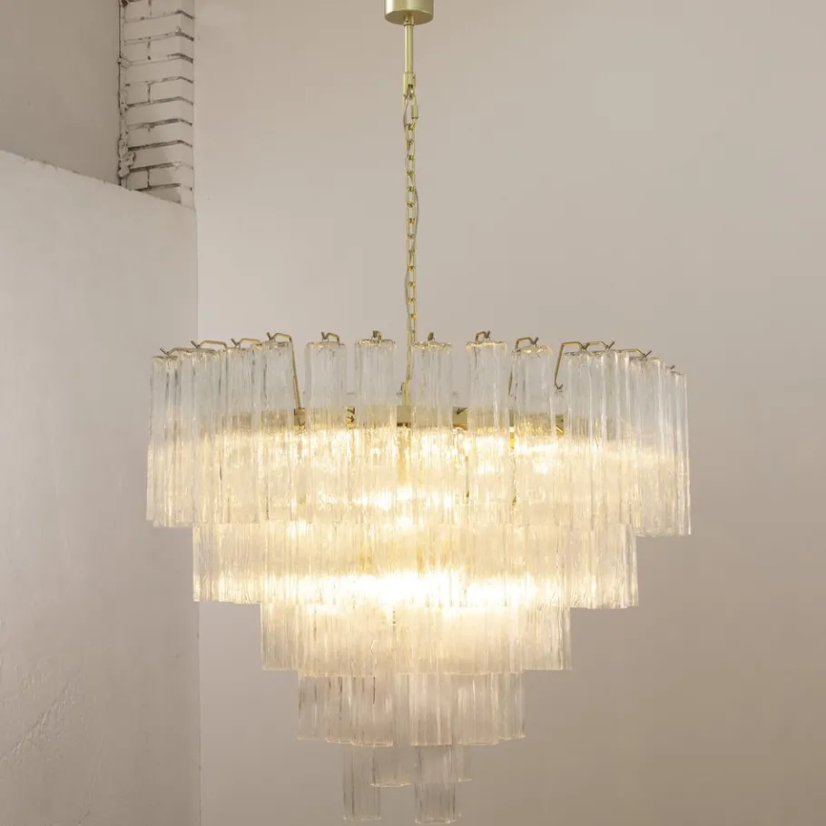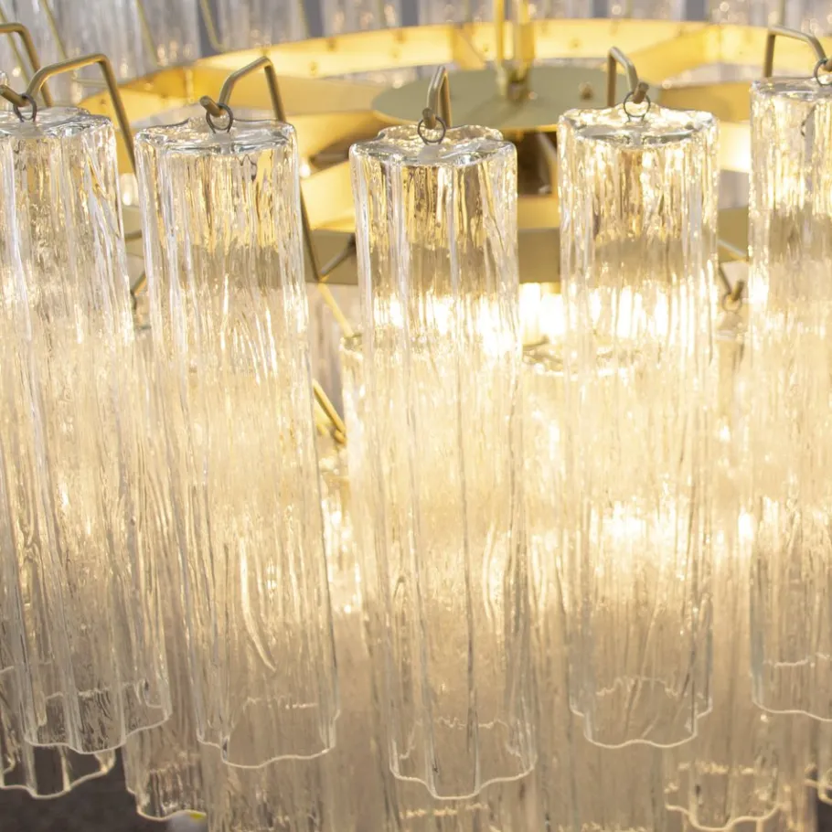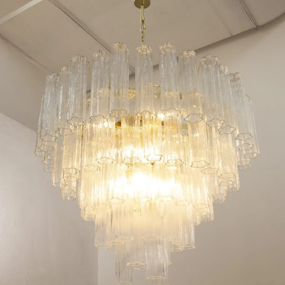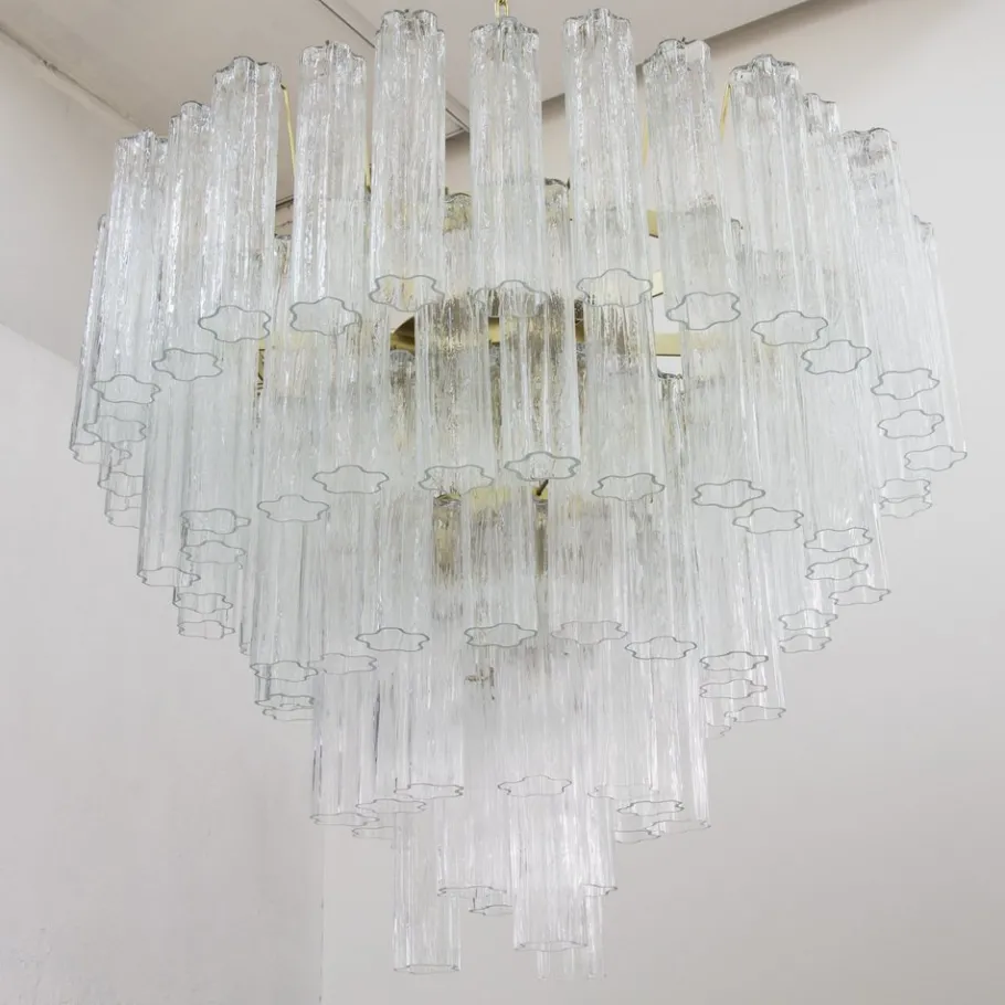 Large Tronchi suspension chandelier Ø105 cm Made in Italy Murano glass crystal color, vintage style design chandelier.
