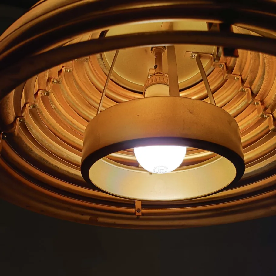 For one E27 bulb each piece. Nice patina on the metal, but easily polishable with metal wool to achieve the original luster of the piece.