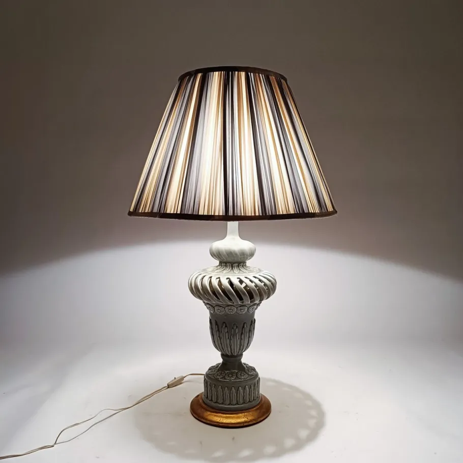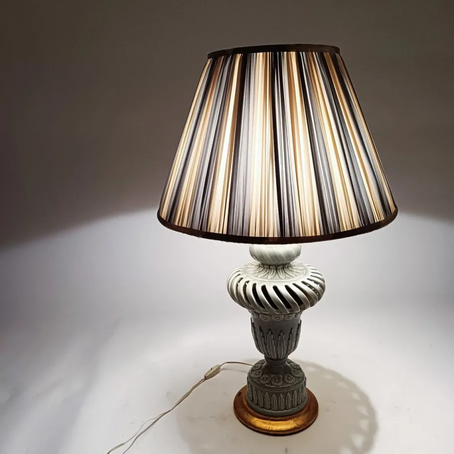 For an E27 bulb. Original installation revised. Ceramic in perfect condition. Screen with some slight wear from the passage of time.