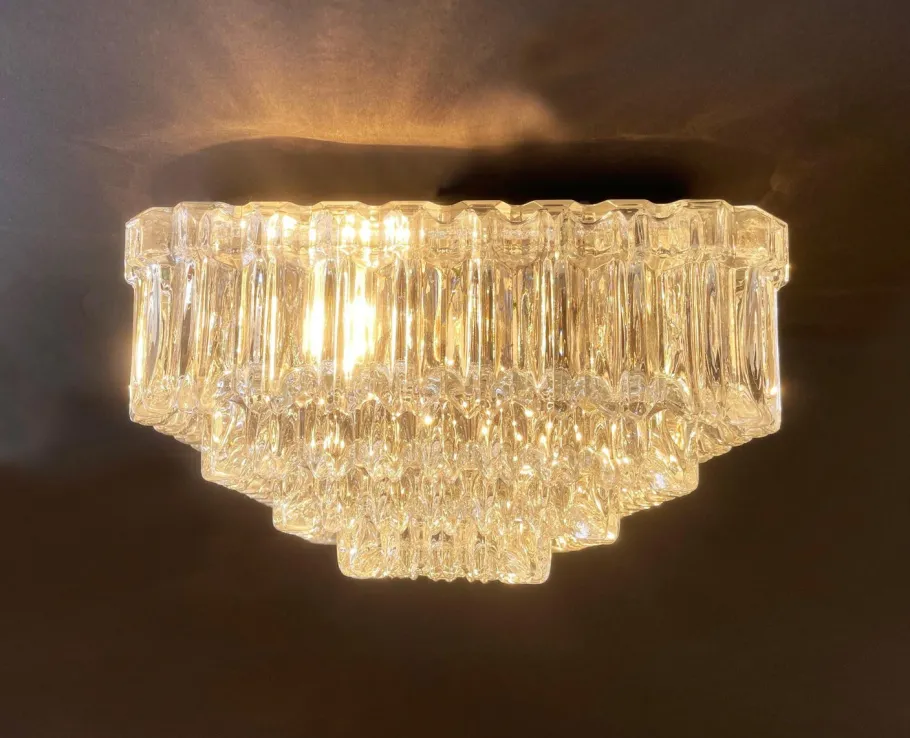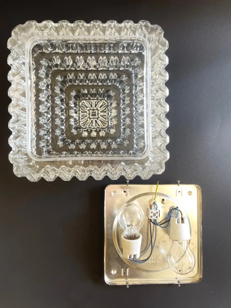 The chunky and glamorous glas shade is sitting on a metal base, holding 2 E27 screw fittings.