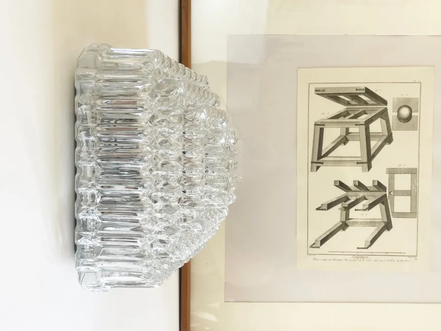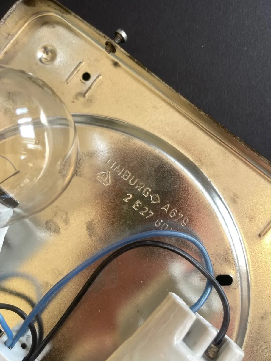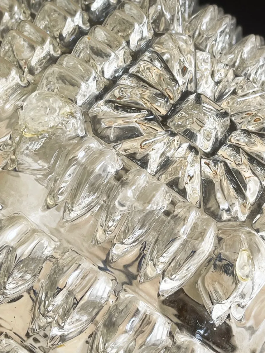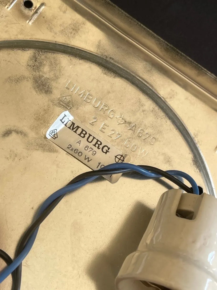 Attributed to Helena Tynell, due to the center pattern and overall style. She is one of the artists who created the most beautiful lighting of that time, mainly for Glashütte Limburg.