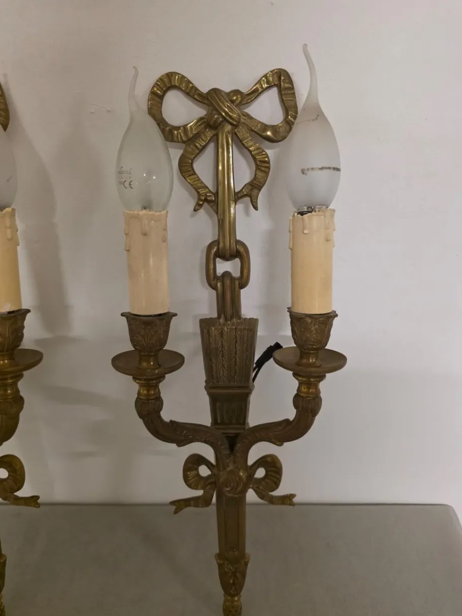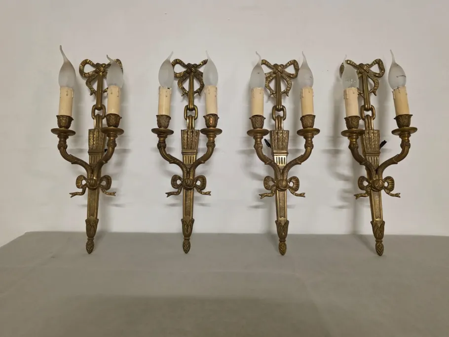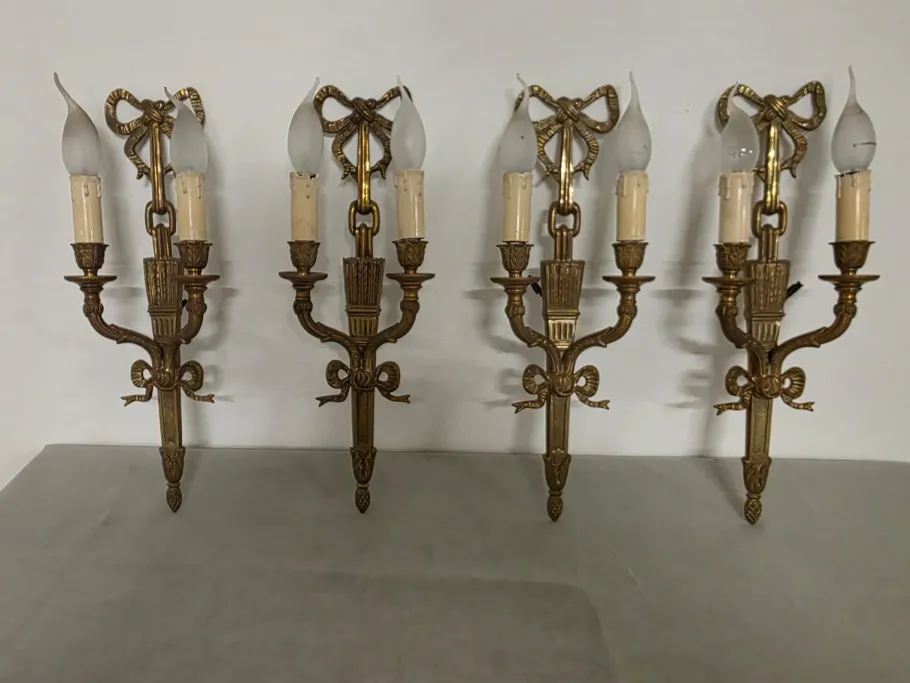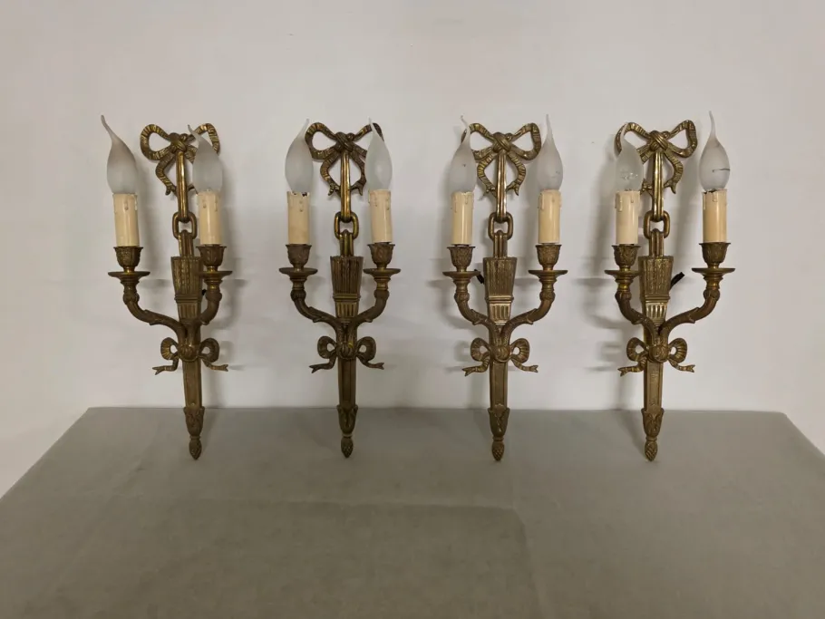 Four refined gilded bronze wall lamps.