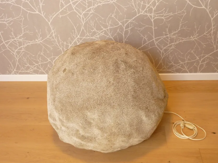 Fiberglass and sand for a very successful “stone” effect, which, placed individually or in groups, was a delight in the entrances of chic buildings in the 1970s.