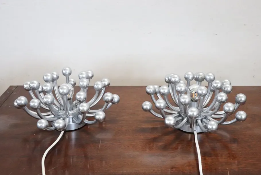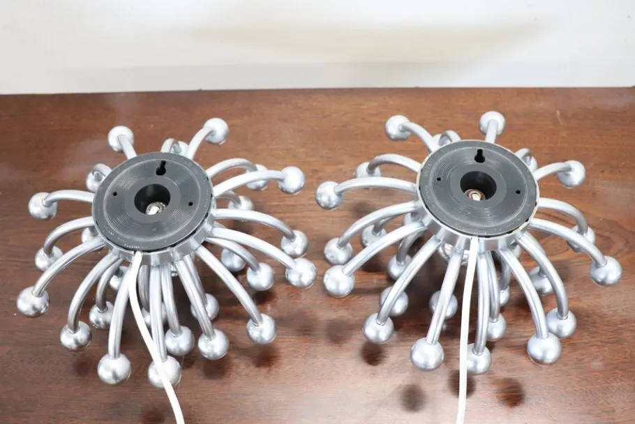 These fantastic lamps with a futuristic design perfectly express the combination of modern materials such as plastic and innovative aesthetics such as chrome plating, combined with the need for functionality. Elements that characterized the research and production of the best Italian designers in the 70s.