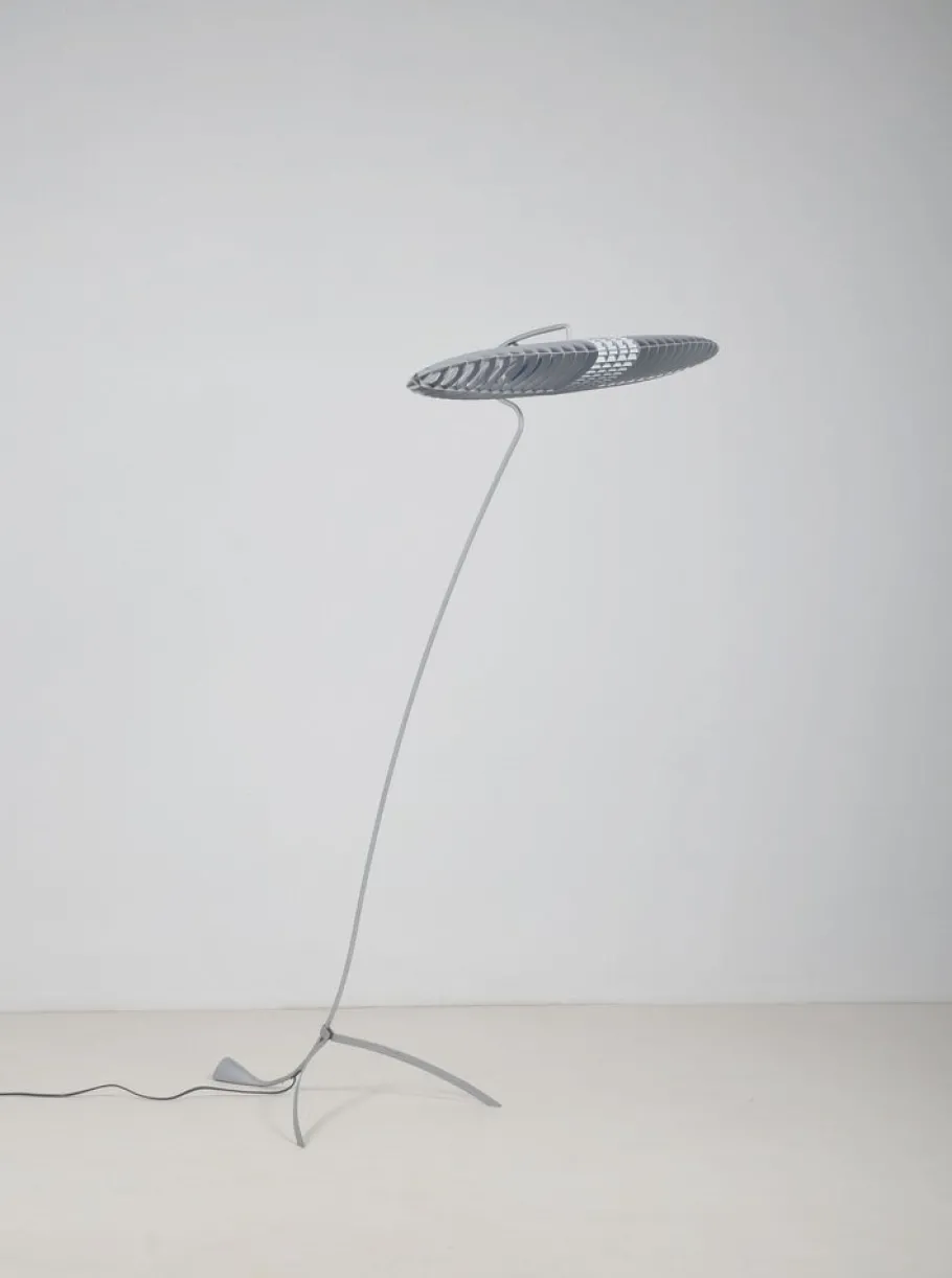 The floor lamp, unlike the pendant lamp, was only produced in a small edition. A dimmer ensures that the lamp can spread a pleasant mood light.