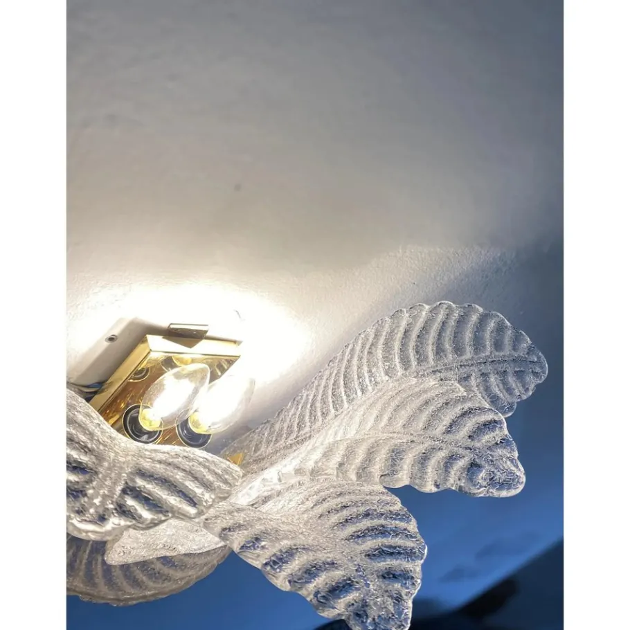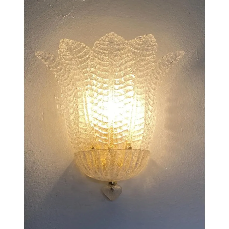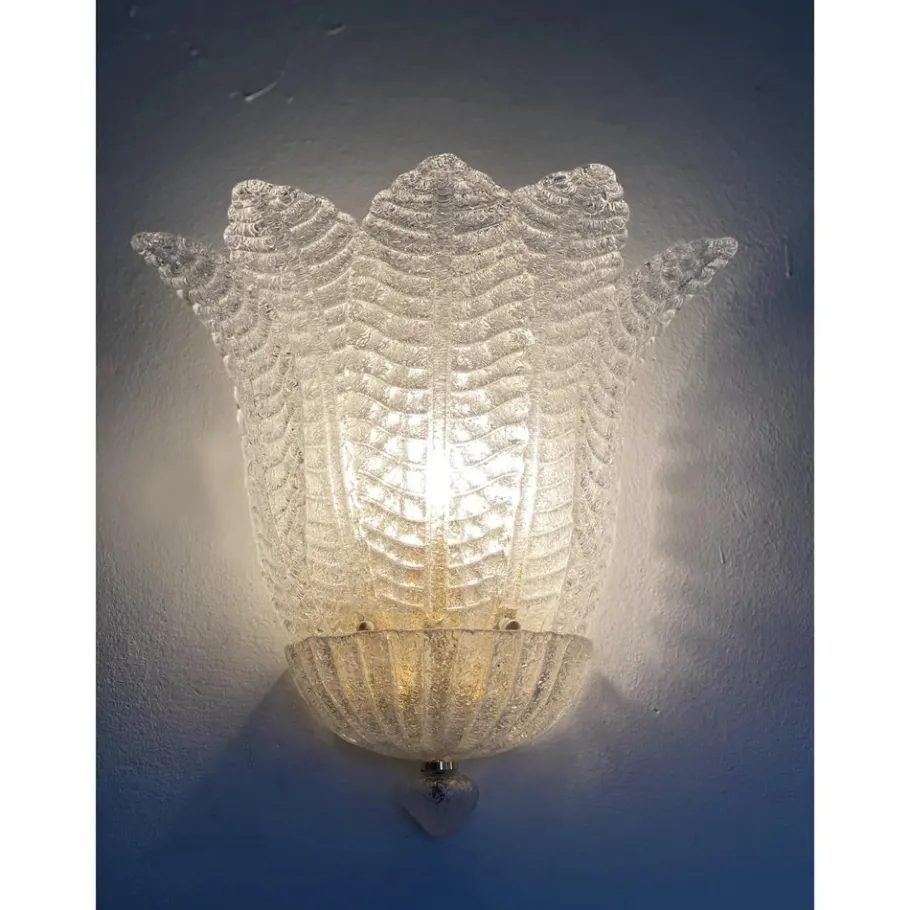 The glass worked in a traditional slab an artisanal technique of Murano glass, transparent graniglia that give it bright whwn the light is on.