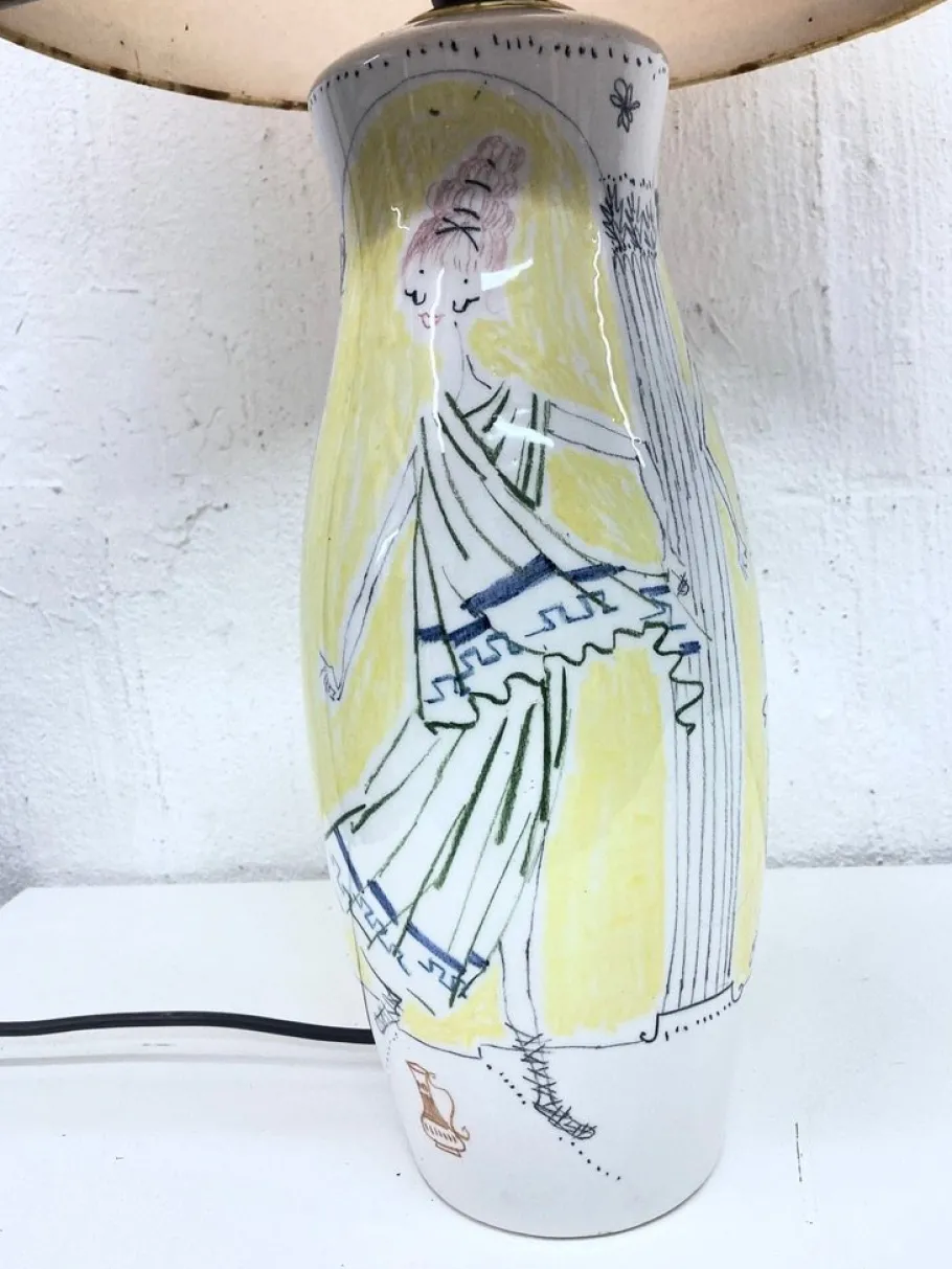Good used condition. Shade and socket are likely not original. Shade with slight stains.