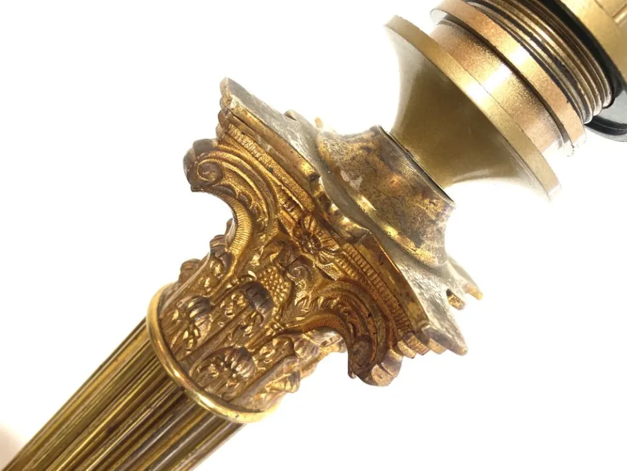 It has a great deep gold patina, the base has time-related scratches.