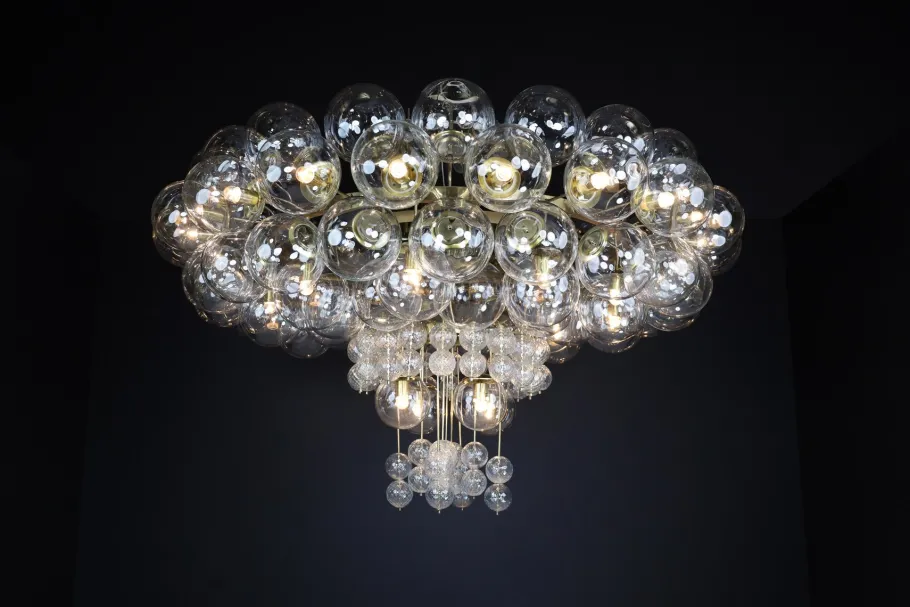Brand / Origin : Preciosa / Czechia. – Size: Diameter 220 cm – Size: Height 175 cm – Fitted with 34 E27 sockets suitable for LED. – The lights are compatible with US/UK/ASIA standards. – Cleaned, well-wired, and ready to use. – We can supply any length chain – 2 chandeliers available.