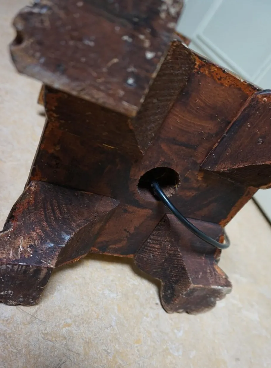 – The lamp is made in hand carved wood and hand painted gold gilt with fibrant green polychrome color