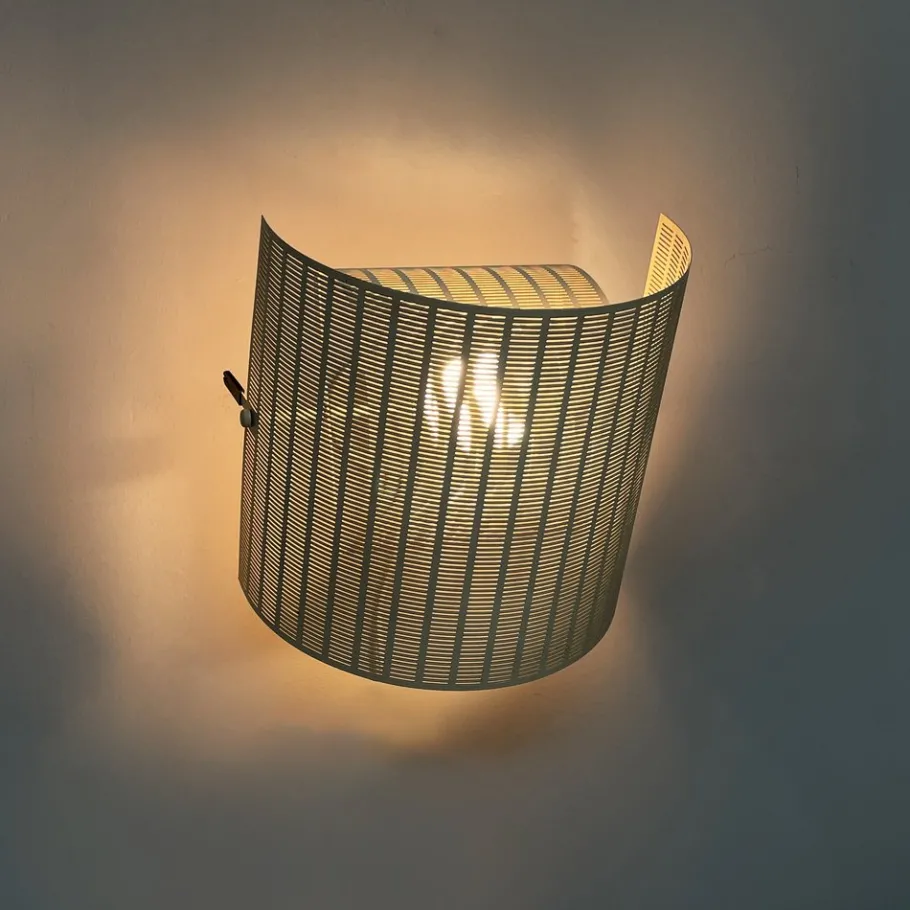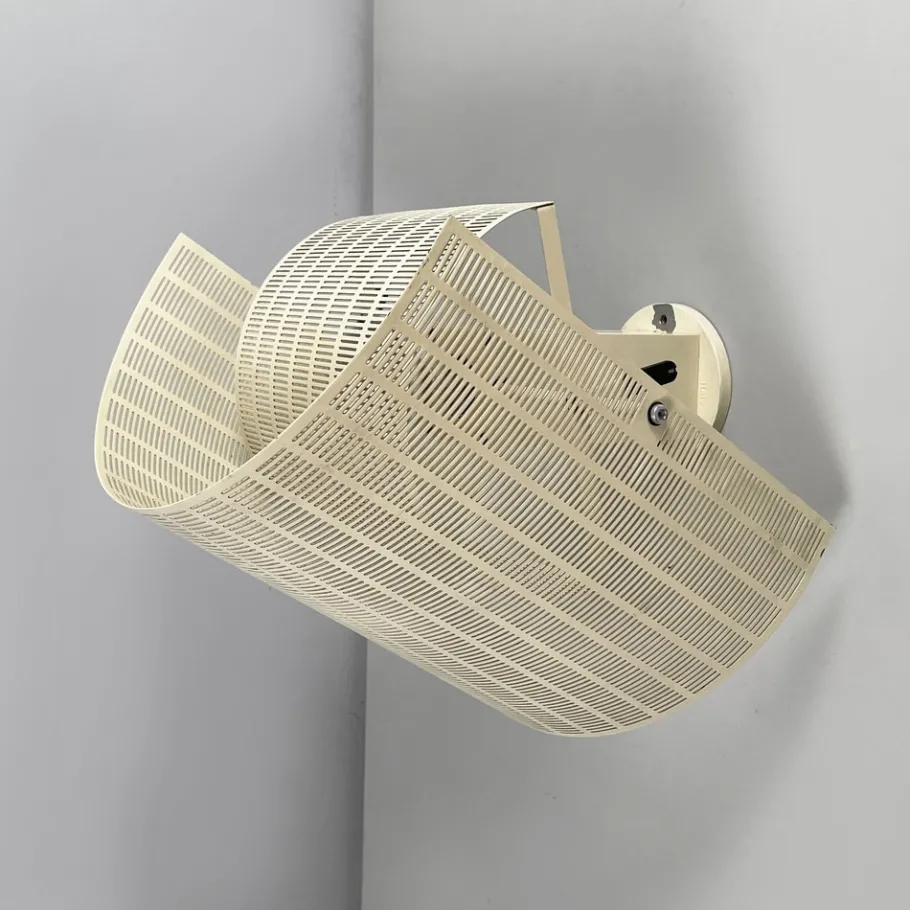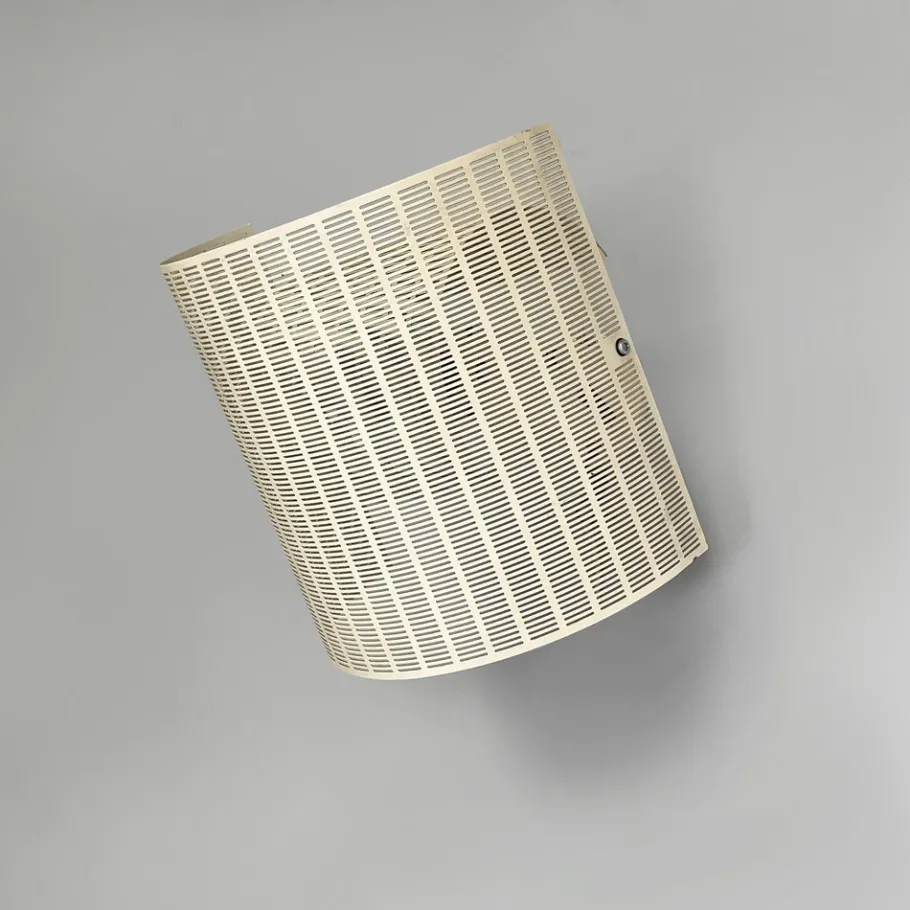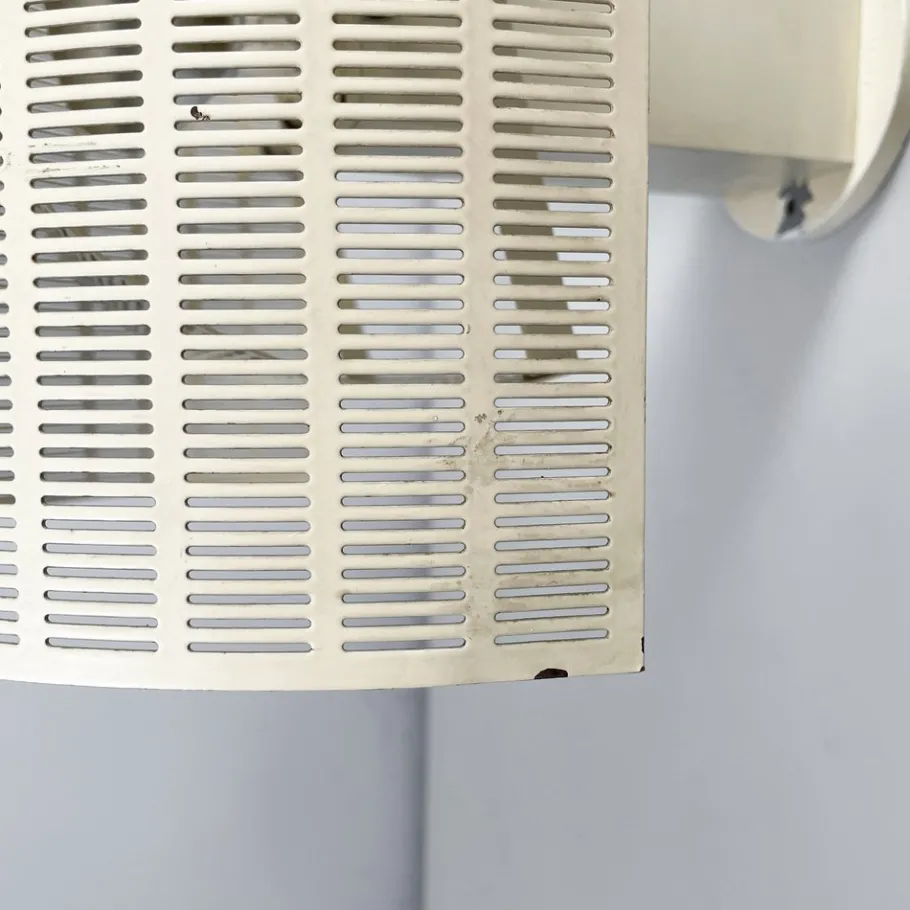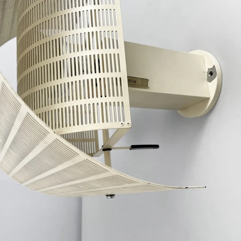 Wall lamp model Shogun entirely in metal. The lamp has a double adjustable diffuser in curved, perforated and white-beige painted metal sheet. There are two lateral metal handles to move the lampshades. The structure has a square section in white-beige painted metal. Round wall attachment. It can be used as ceiling lamp.