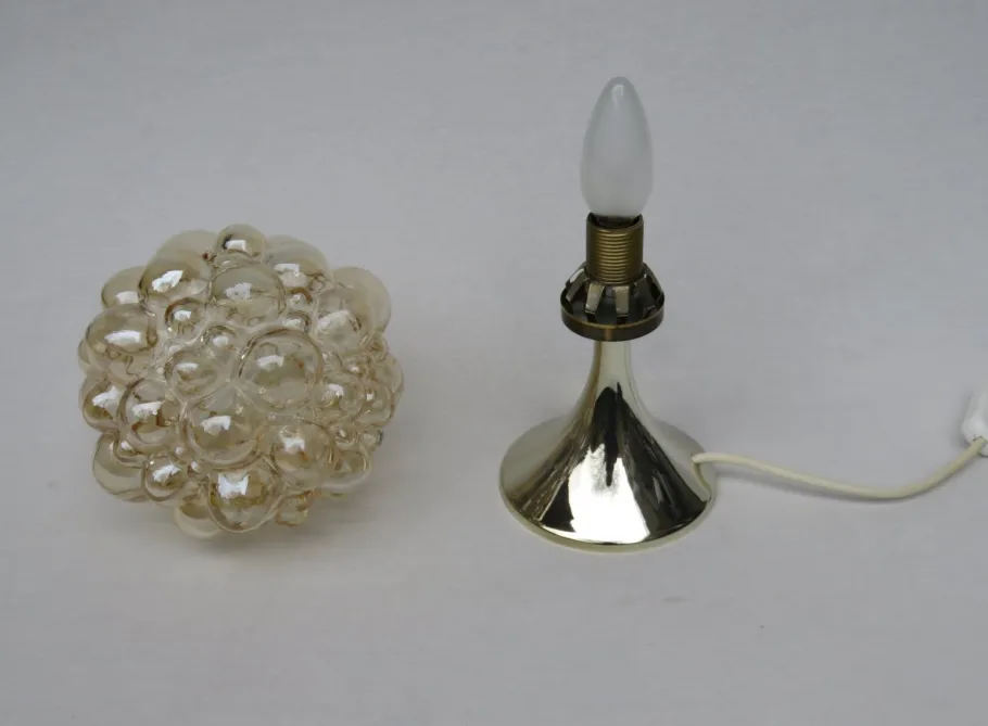 The bases are made of gold-colored plastic, the holders in which the glass shades sit are made of dark patinated brass.