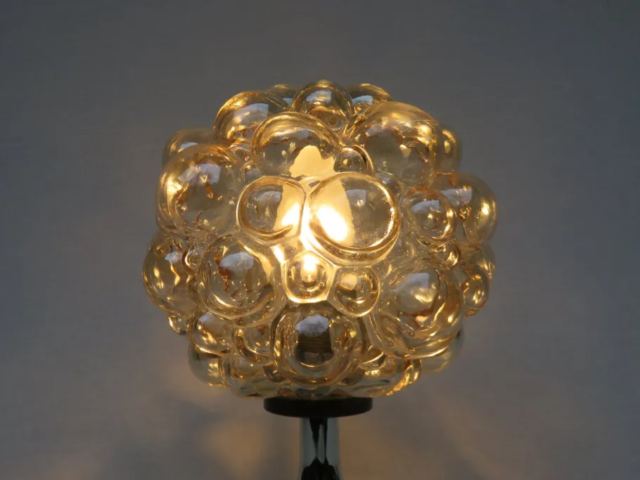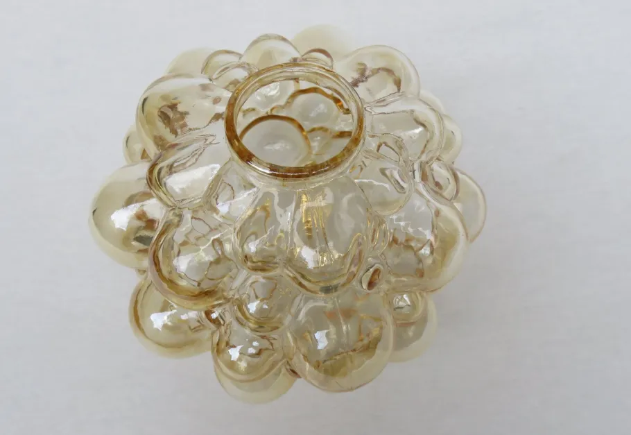Thanks to the thick-walled, amber-colored lampshades made of bubble glass, the lights emit interesting lighting effects and create glare-free and pleasant room lighting.