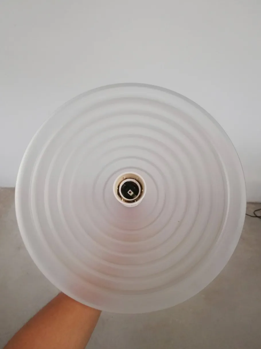 The style is post-modern with its “DEEVO” style diffuser in freedom of choice, made of sandblasted glass and cast iron for the base.