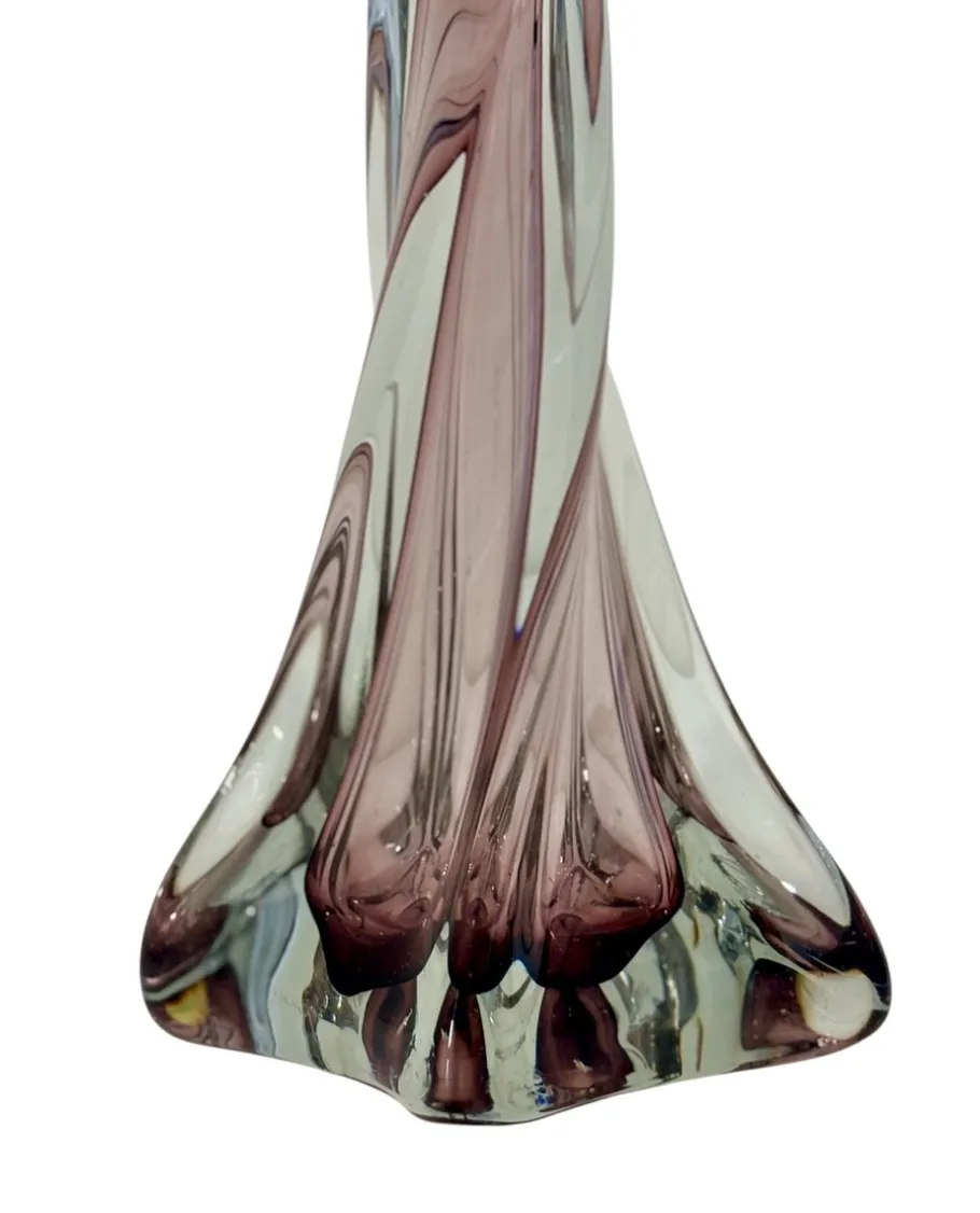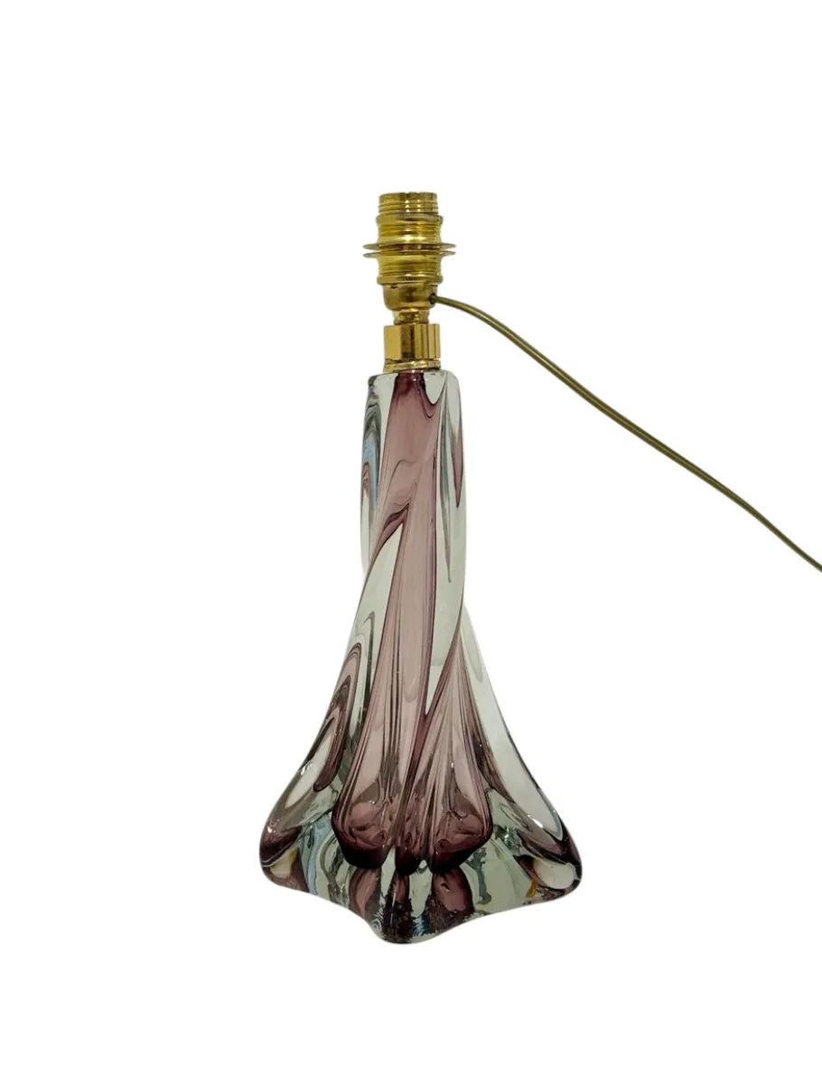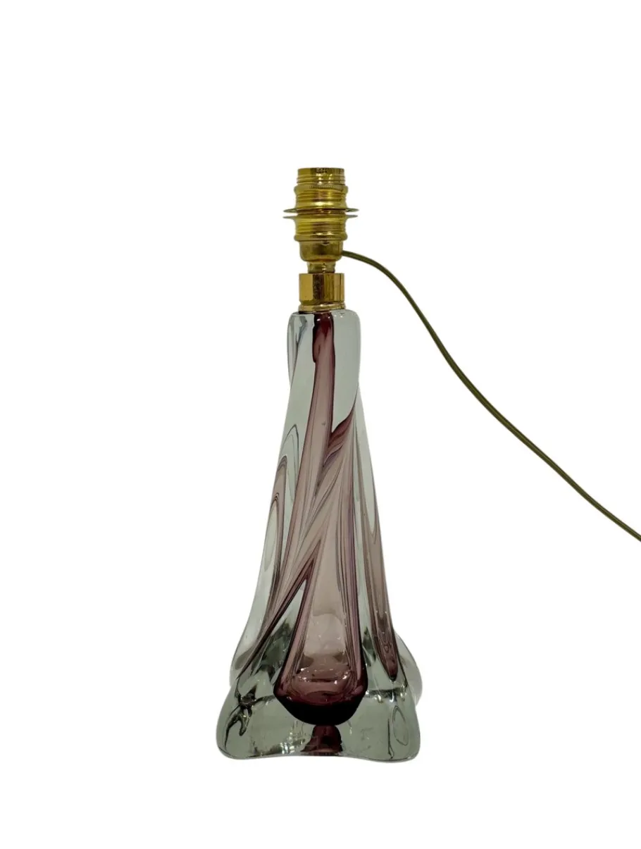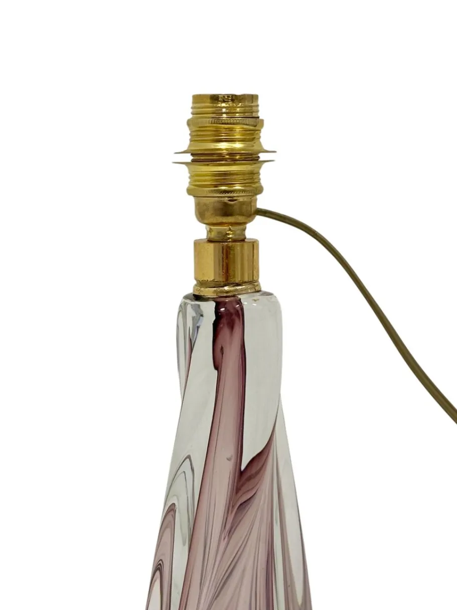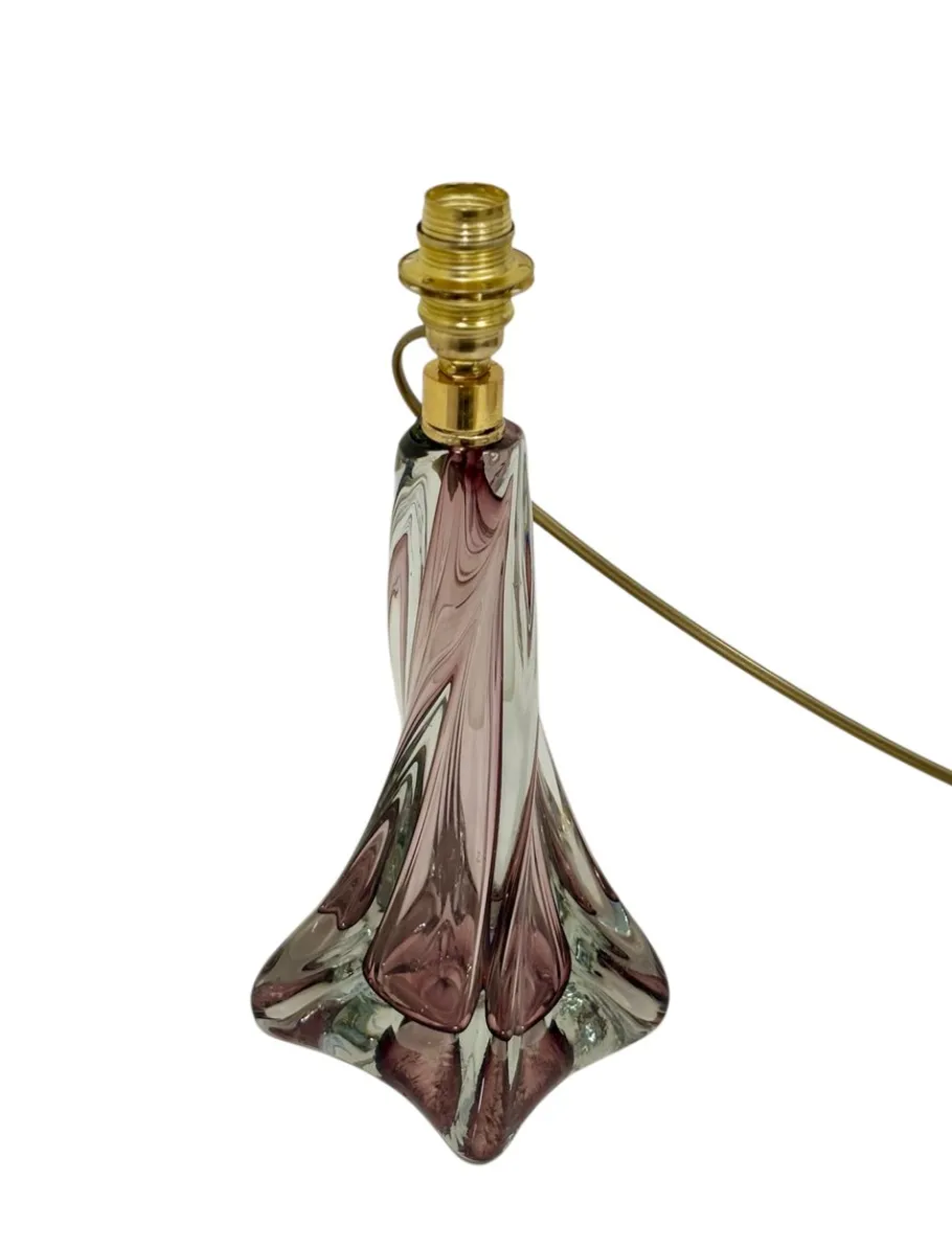 Belgian Val Saint Lambert lamp circa 1940, made of hand-crafted leaded crystal, very lustrous and heavy, in pink.